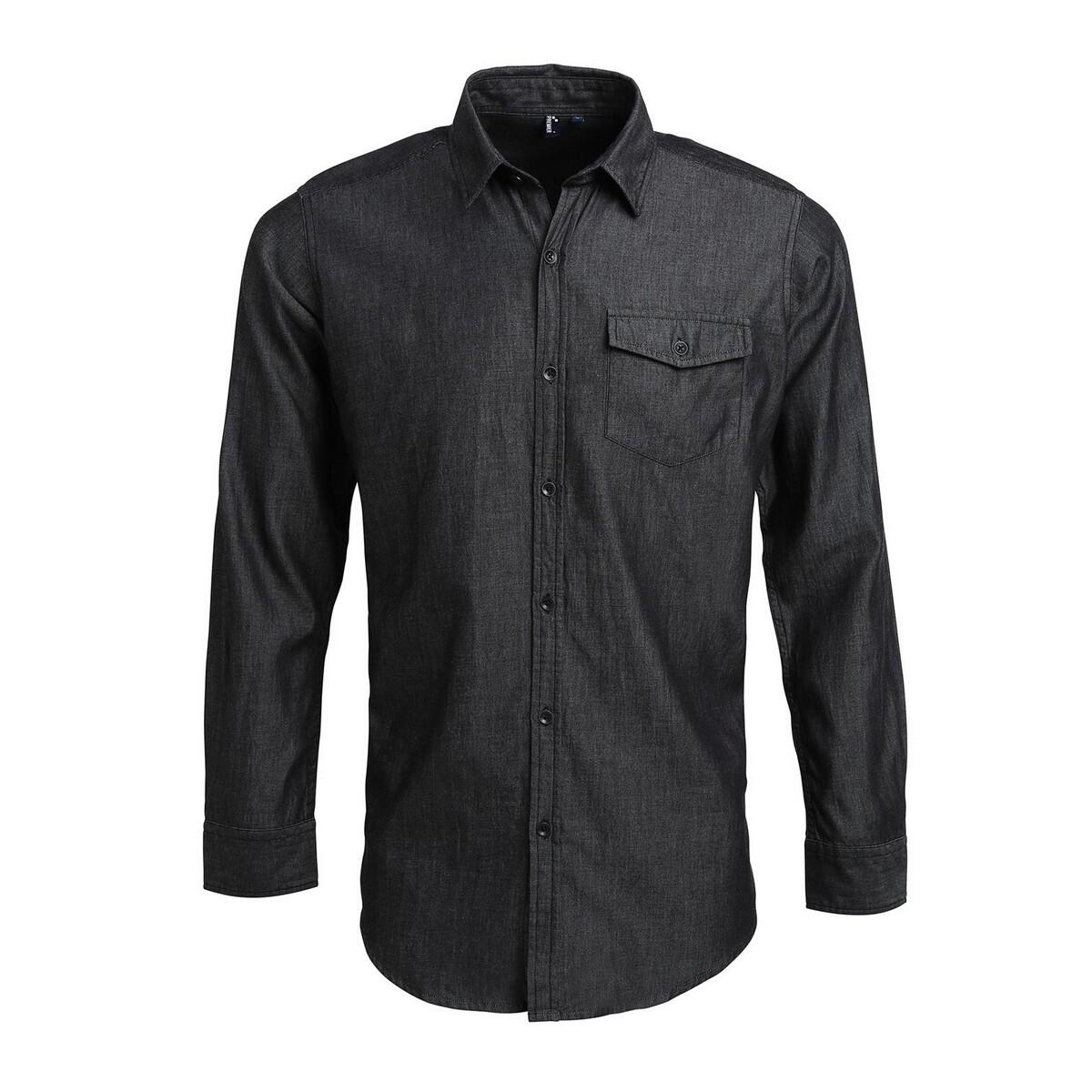 Mens Denim Jean Style Stitching Shirt (Black Denim)