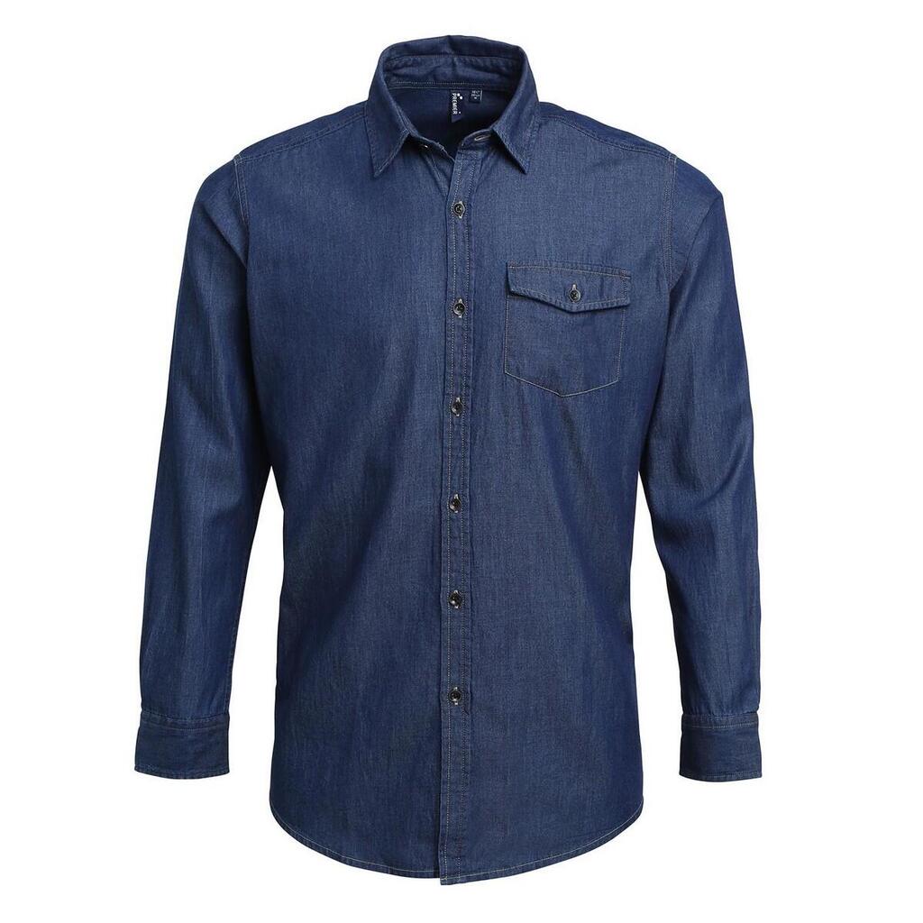 Mens Denim Jean Style Stitching Shirt (Indigo Denim)