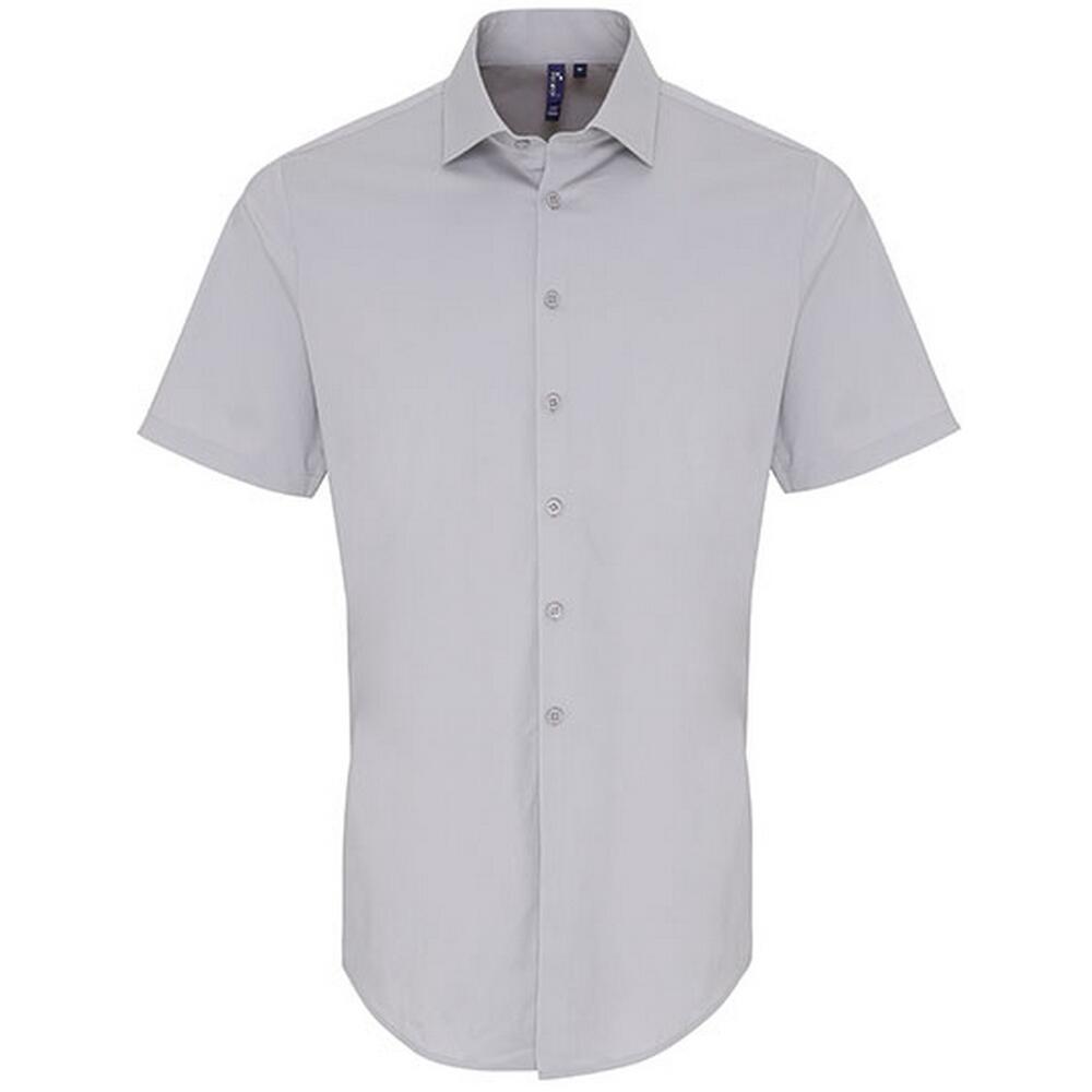 Mens Poplin Stretch ShortSleeved Shirt (Silver)