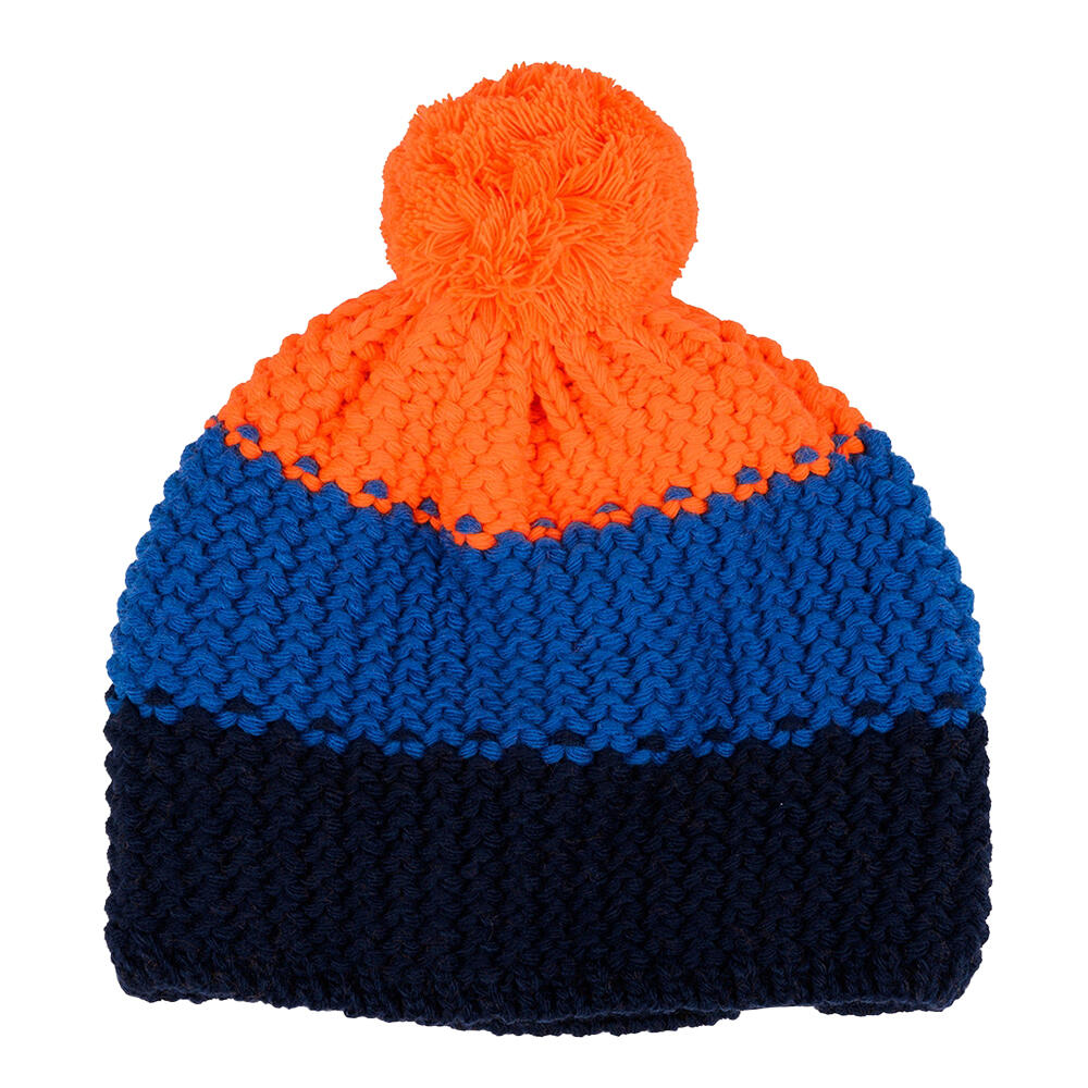 Mens H4Z22 Colour Block Pom Pom Beanie (Black/Blue/Orange)