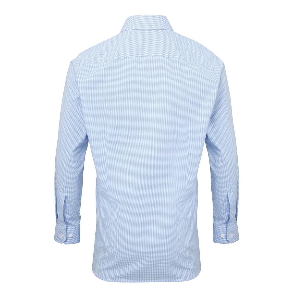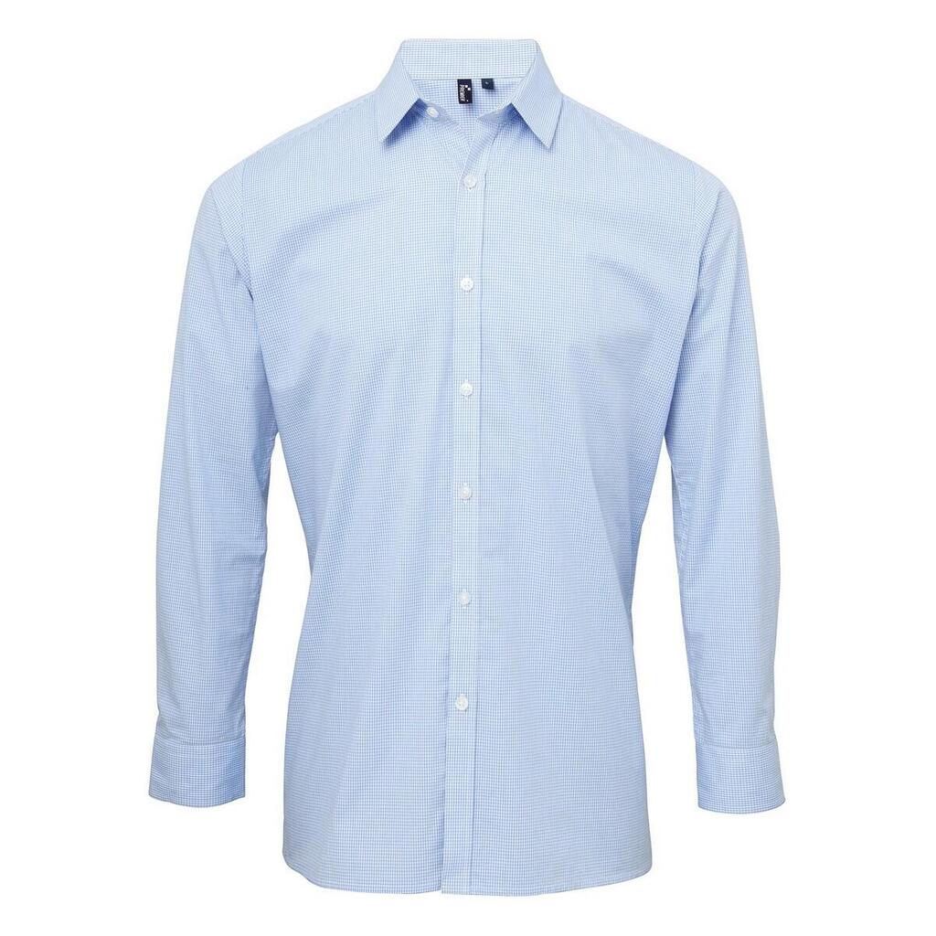 Mens Gingham Micro Checked LongSleeved Shirt (Light Blue/White)