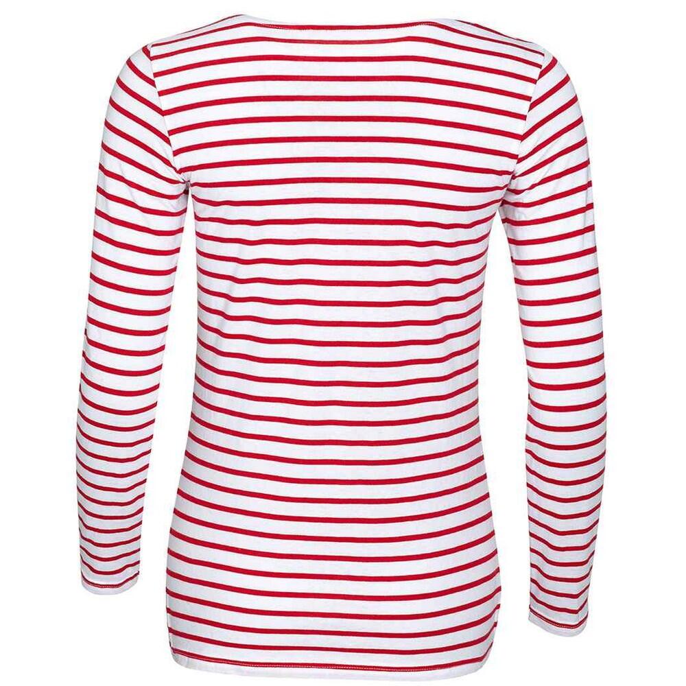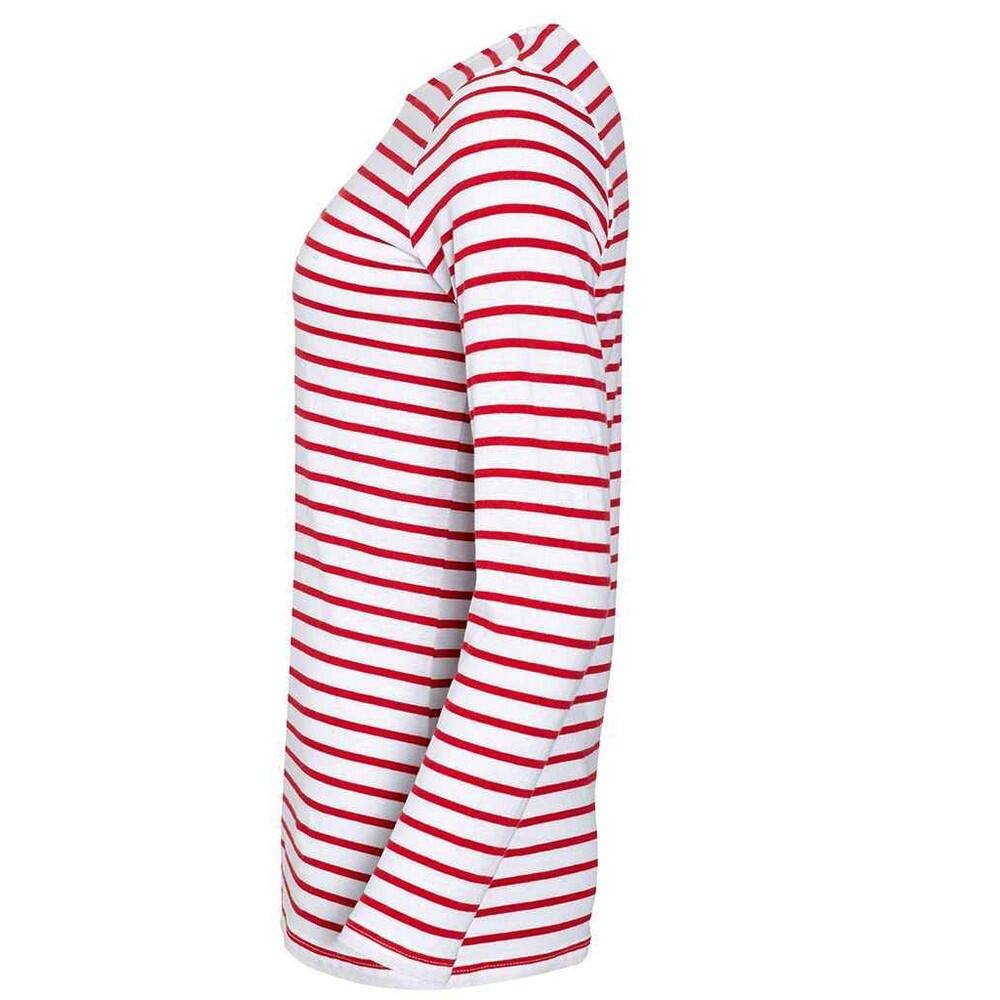 Womens/Ladies Marine Striped LongSleeved TShirt (White/Red)