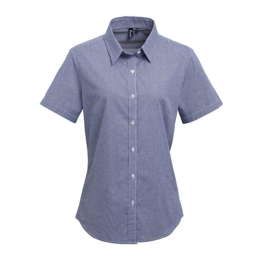 Womens/Ladies Micro Gingham Check Cotton ShortSleeved Shirt (Navy/White)