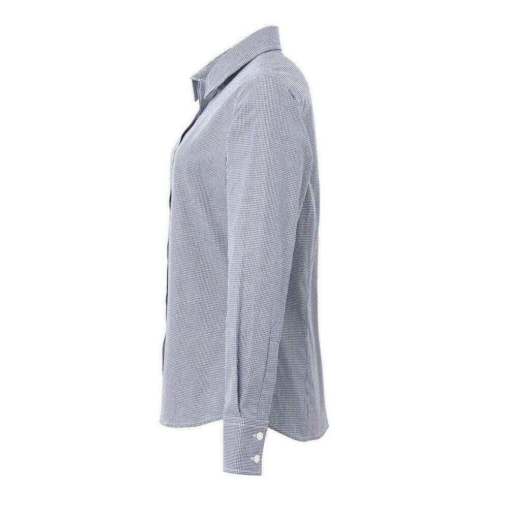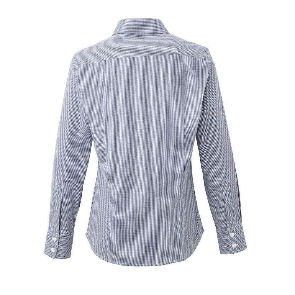 Womens/Ladies Micro Gingham Check Cotton LongSleeved Shirt (Navy/White)