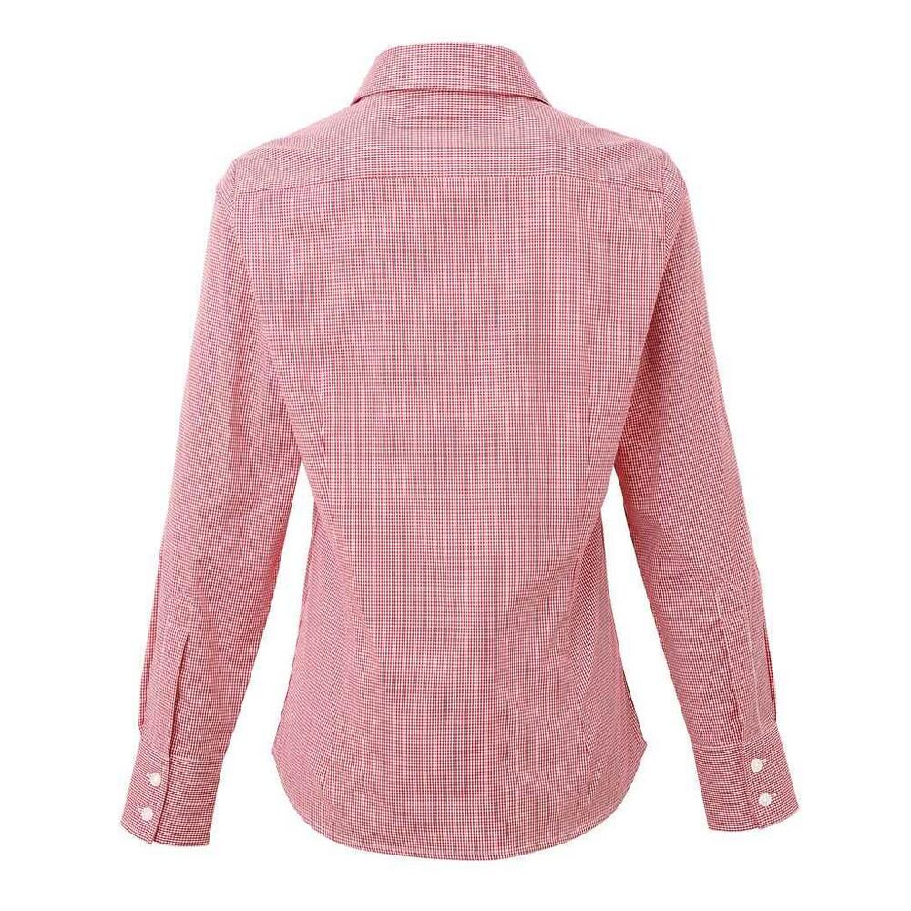 Womens/Ladies Micro Gingham Check Cotton LongSleeved Shirt (Red/White)