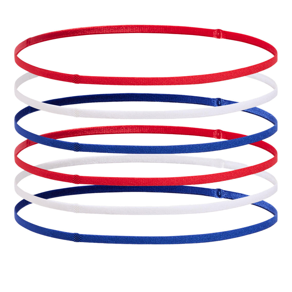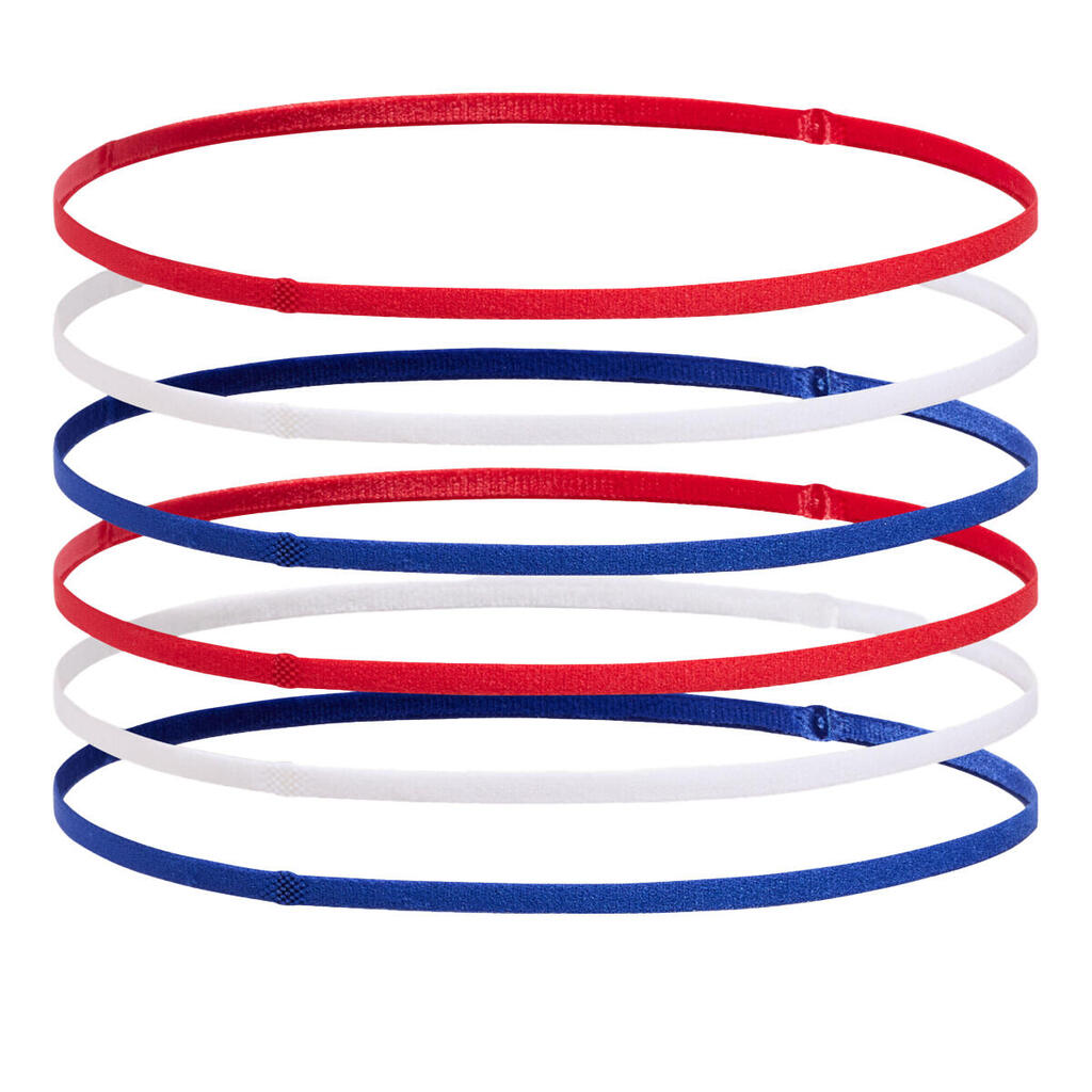 Womens/Ladies Mini Elasticated Headband (Pack of 6) (White/Red/Blue)