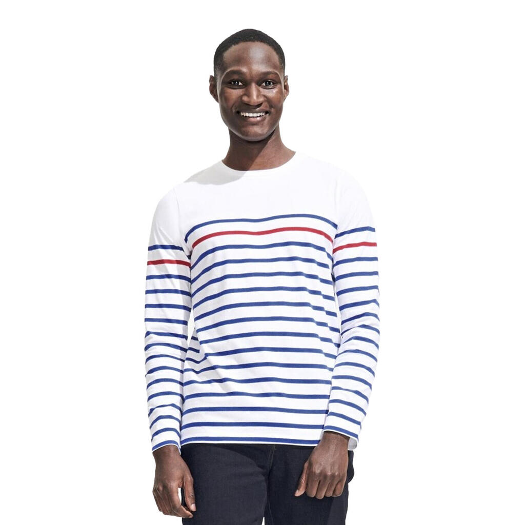 Mens Matelot Striped LongSleeved TShirt (White/Royal Blue/Red)