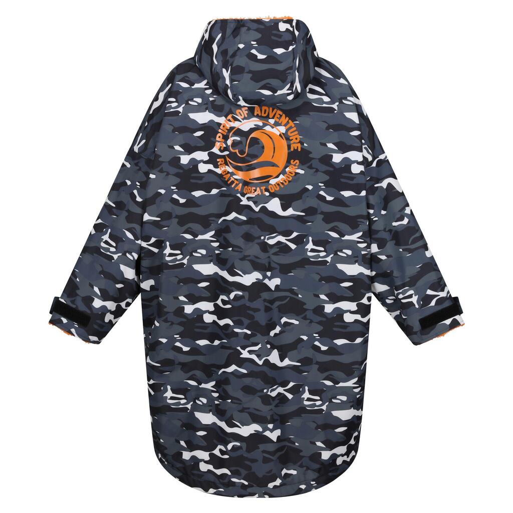 Childrens/Kids Camouflage Waterproof Changing Robe (Black/Persimmon)