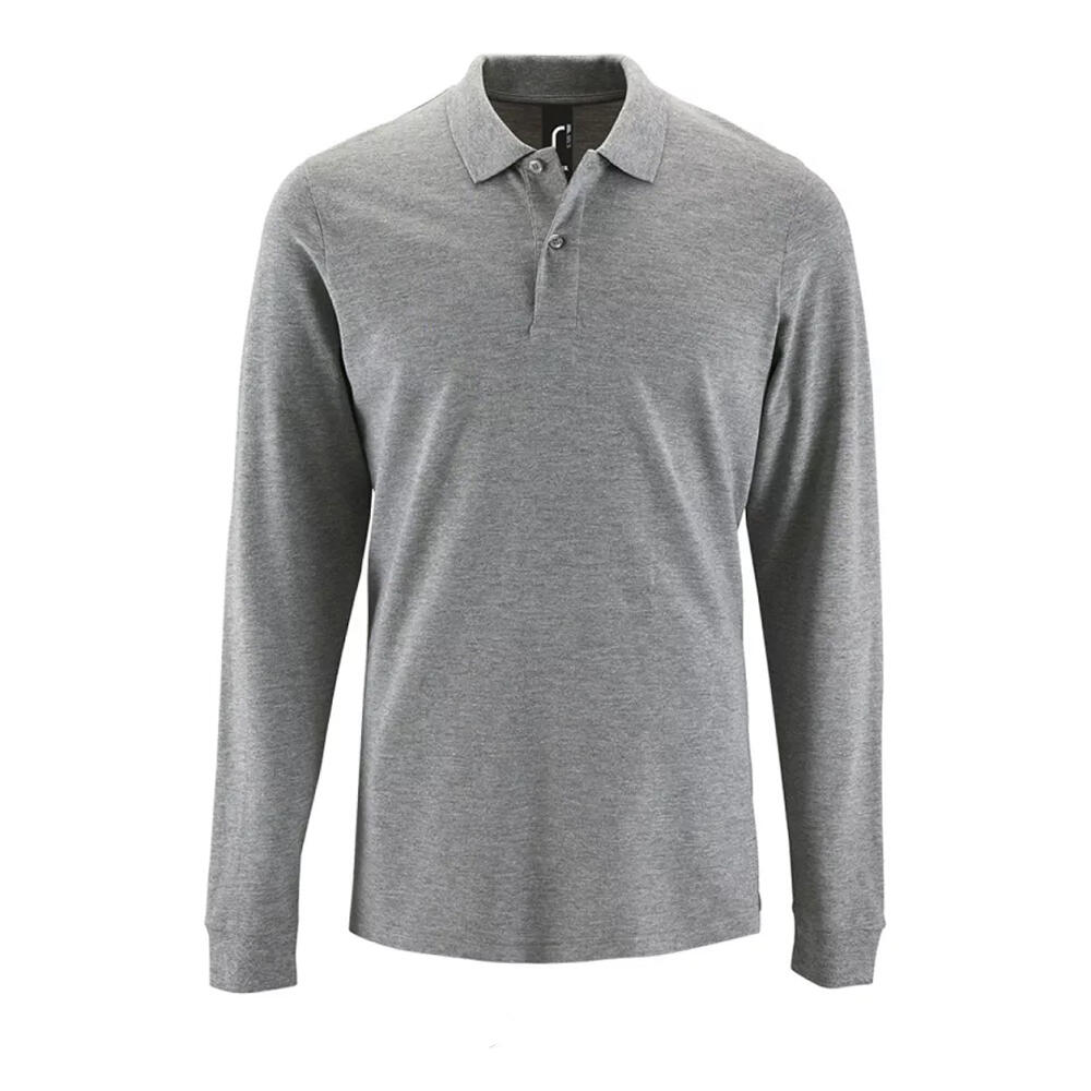 Mens Perfect Melange Pique LongSleeved Polo Shirt (Grey Melange)