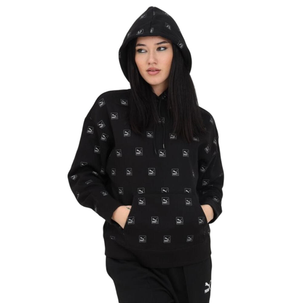 Womens/Ladies Love AllOver Print Hoodie (Black)