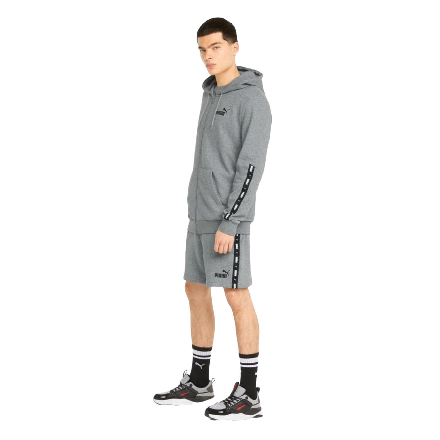 Mens Essential Tape Full Zip Hoodie (Grey)