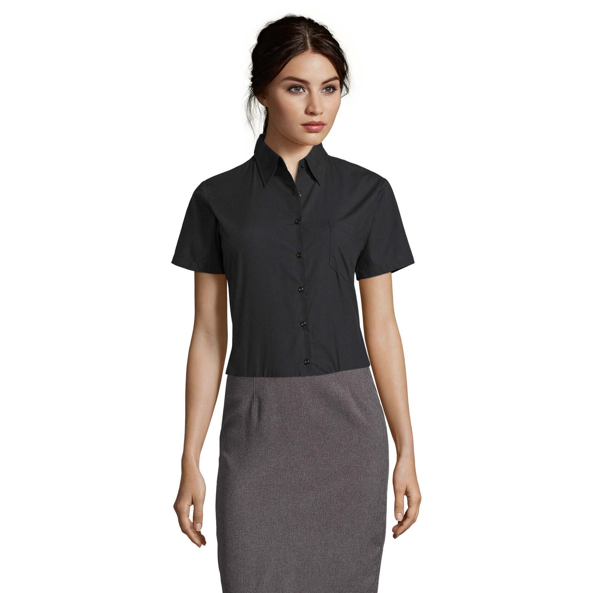 Womens/Ladies Escape Poplin ShortSleeved Business Shirt (Black)
