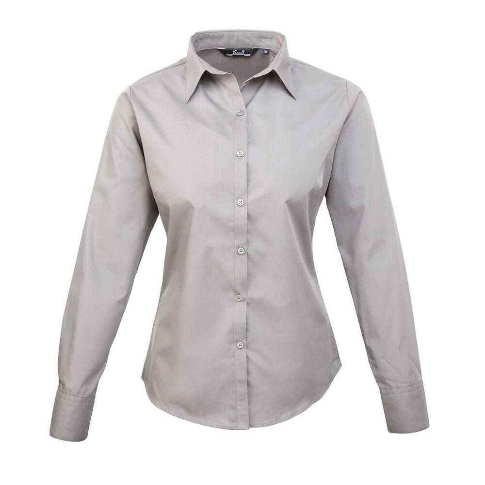 Womens/Ladies Poplin LongSleeved Blouse (Silver)