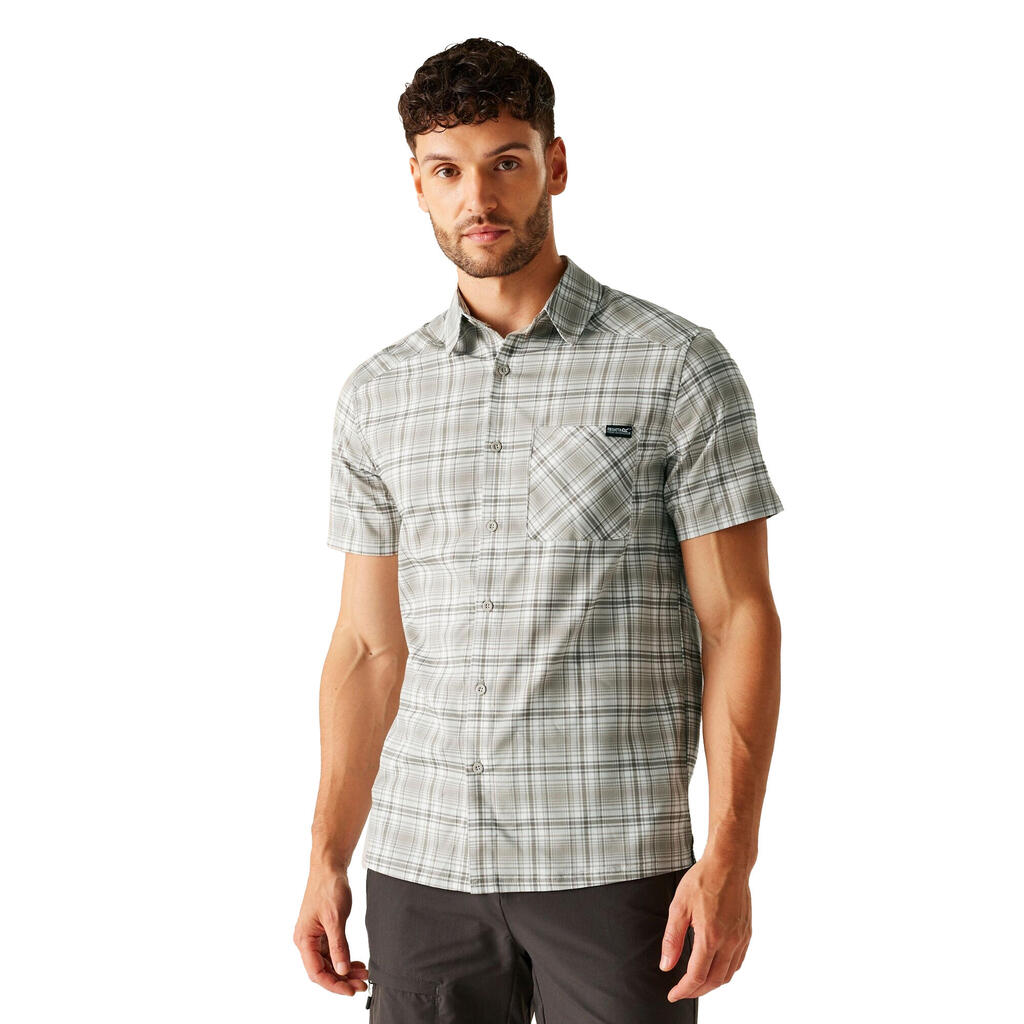 Mens Begarno Checked ShortSleeved Shirt (White/Golden Sand/Treetop)
