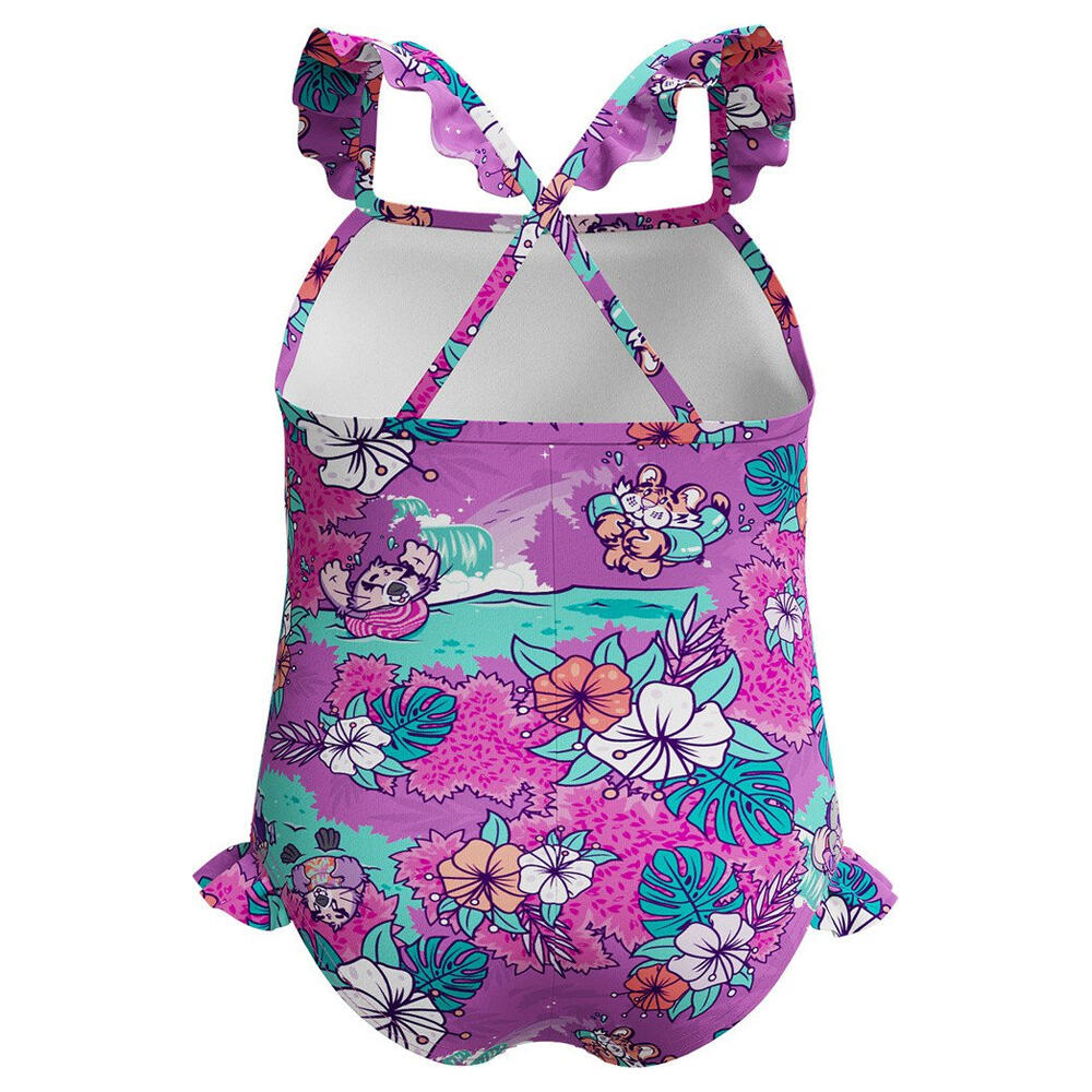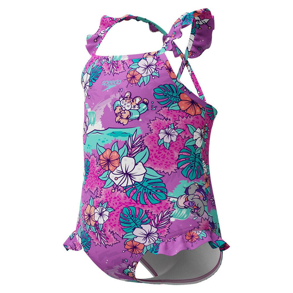 Girls Lts Digital Print Frill One Piece Swimsuit (Purple)