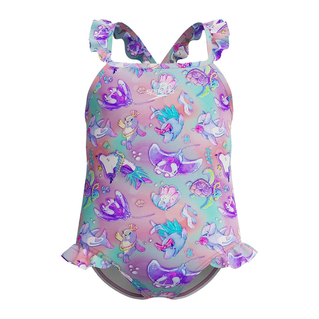 Girls Sea Creatures Frill One Piece Swimsuit (Purple)
