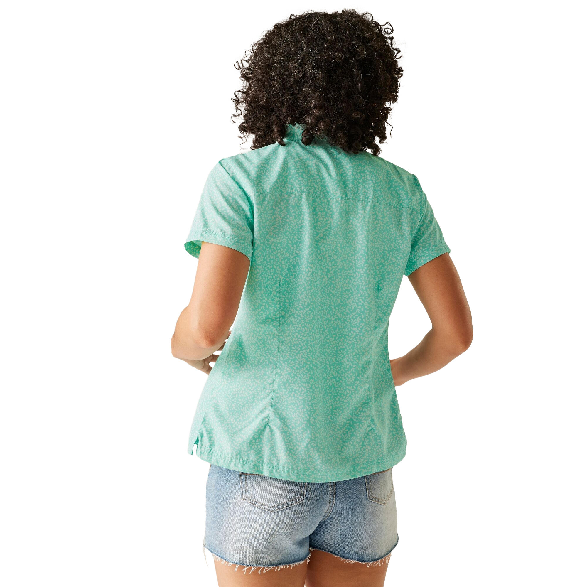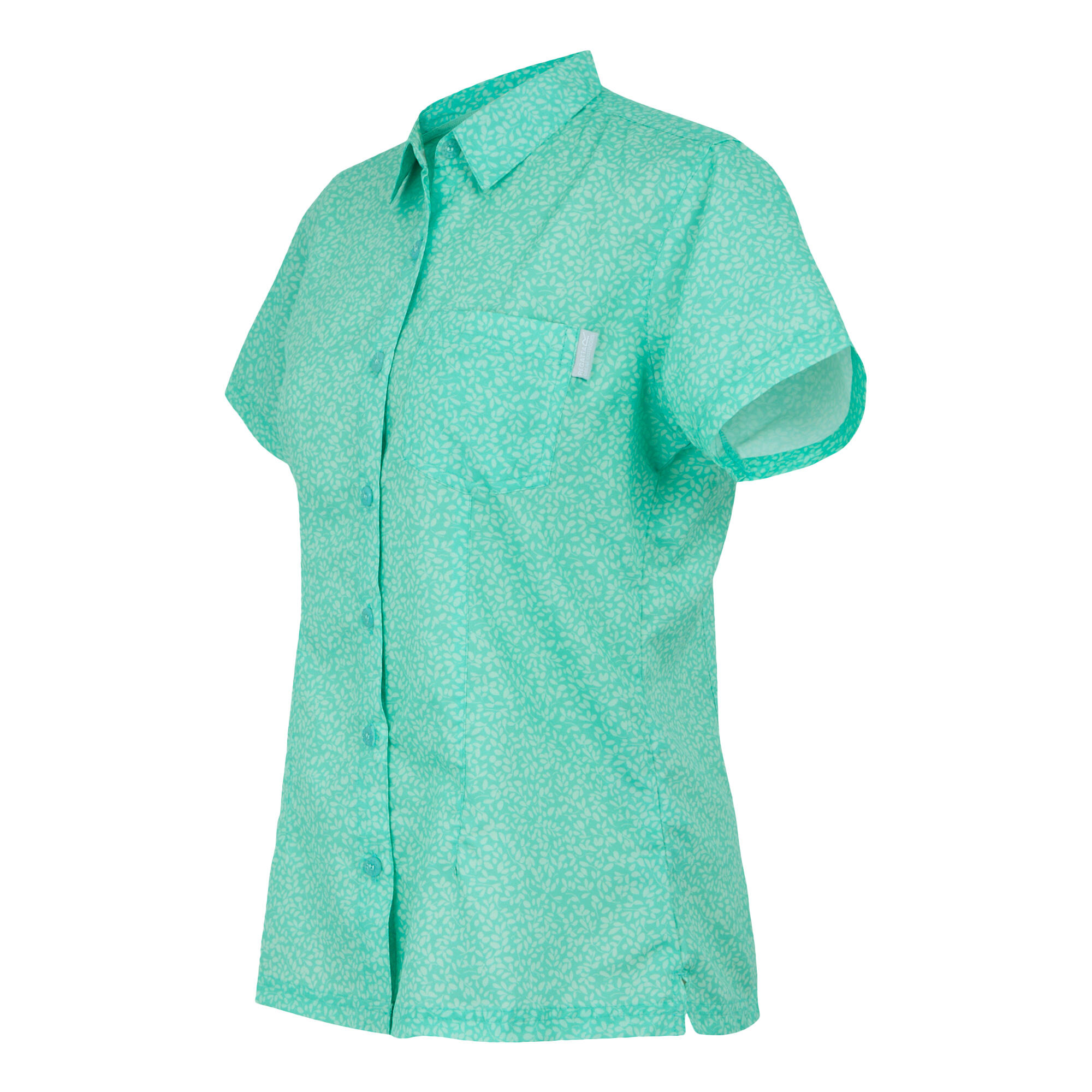 Womens/Ladies Mindano VIII Leaf Print ShortSleeved Shirt (Aruba Blue)