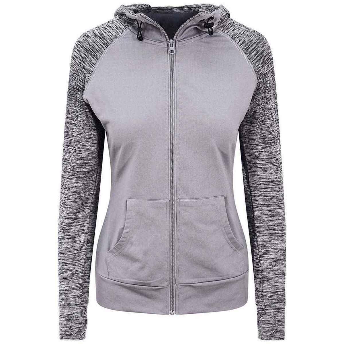 Womens/Ladies Cool Contrast Full Zip Hoodie (Grey/Grey Melange)