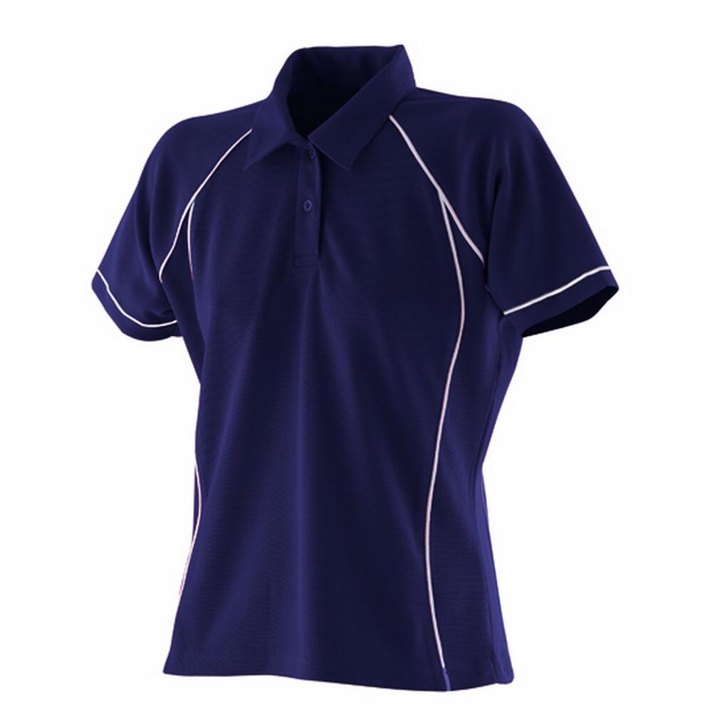 Womens/Ladies Performance Piped Polo Shirt (Navy/White)