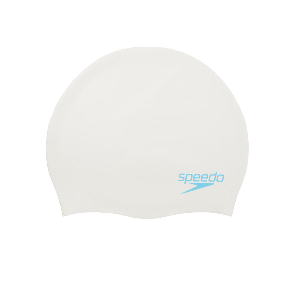 Unisex Adult Plain Silicone Moulded Swim Cap (White/Blue)