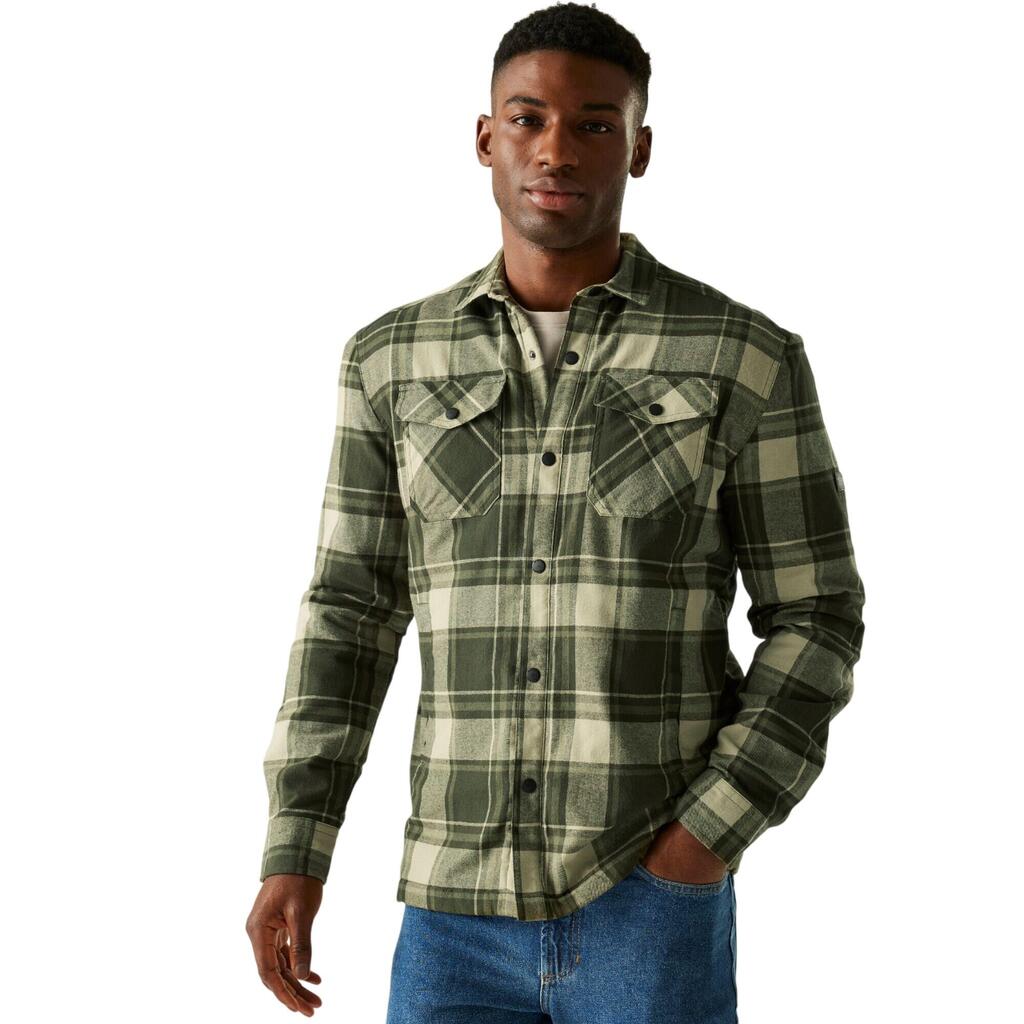 Mens Spennith Plain Shirt Jacket (Dark Khaki/Black)