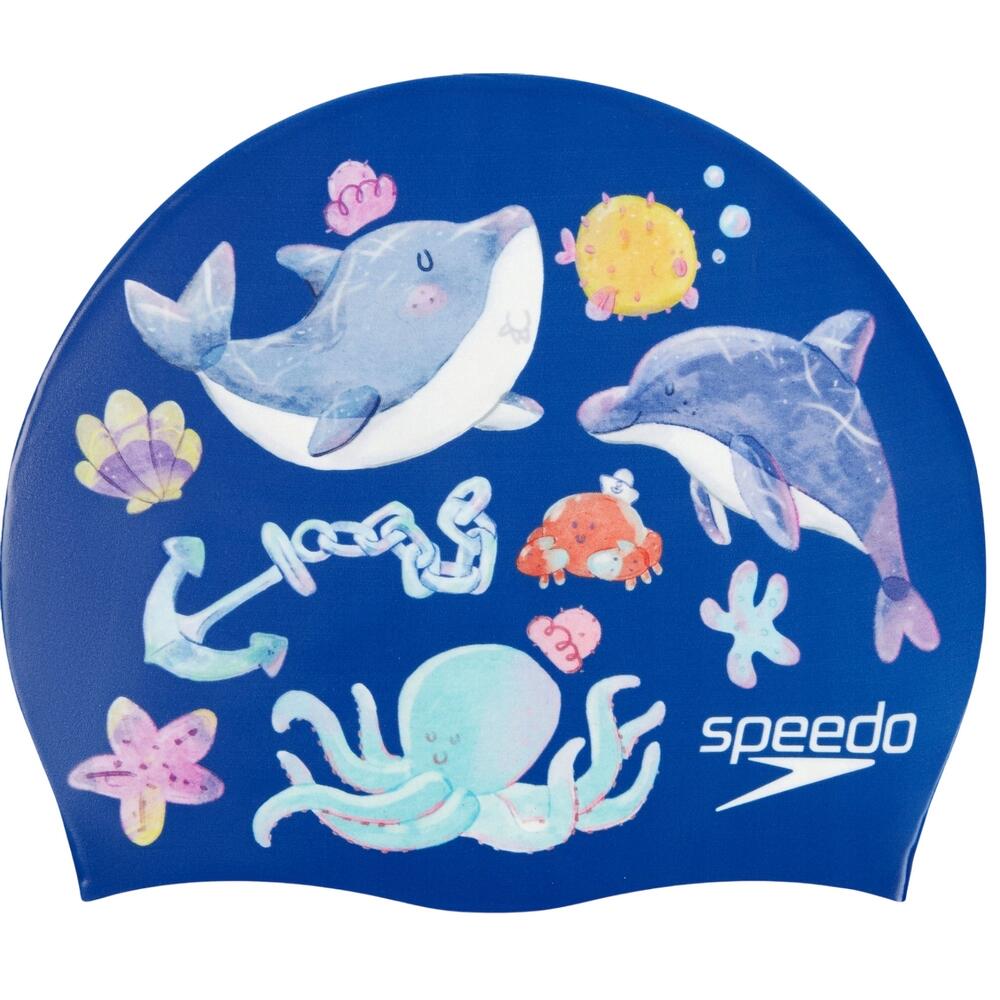 Childrens/Kids Digital Print Swimming Cap (Blue)