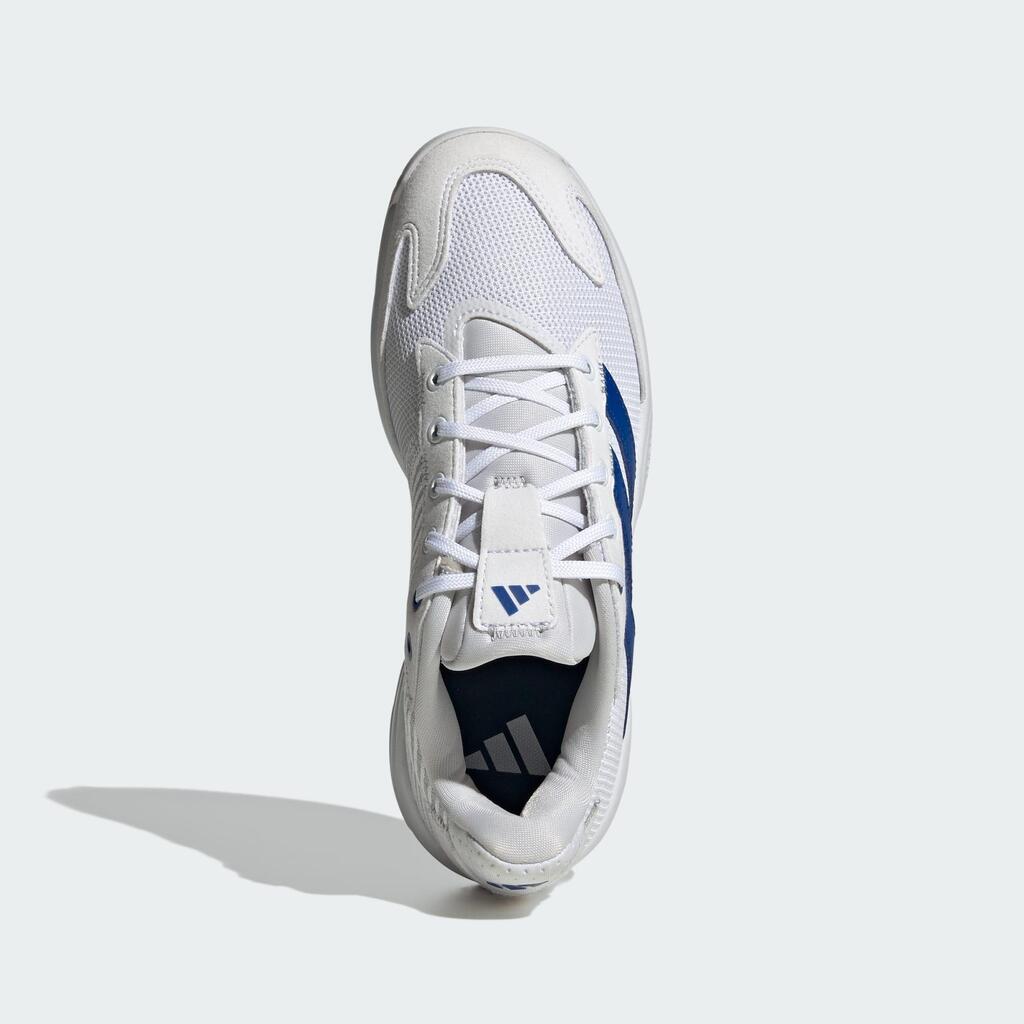 Supportive shoes for indoor sports, made in part with recycled materials.