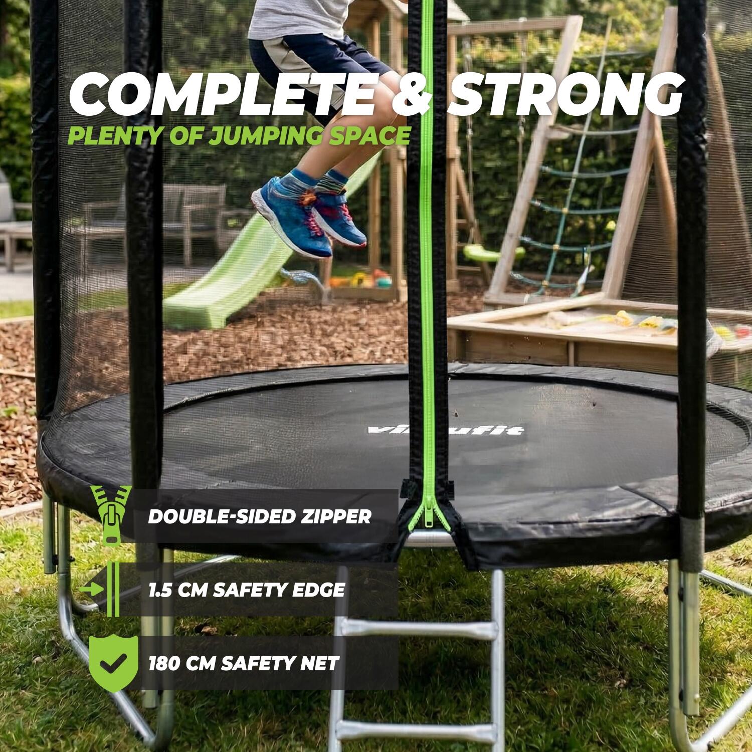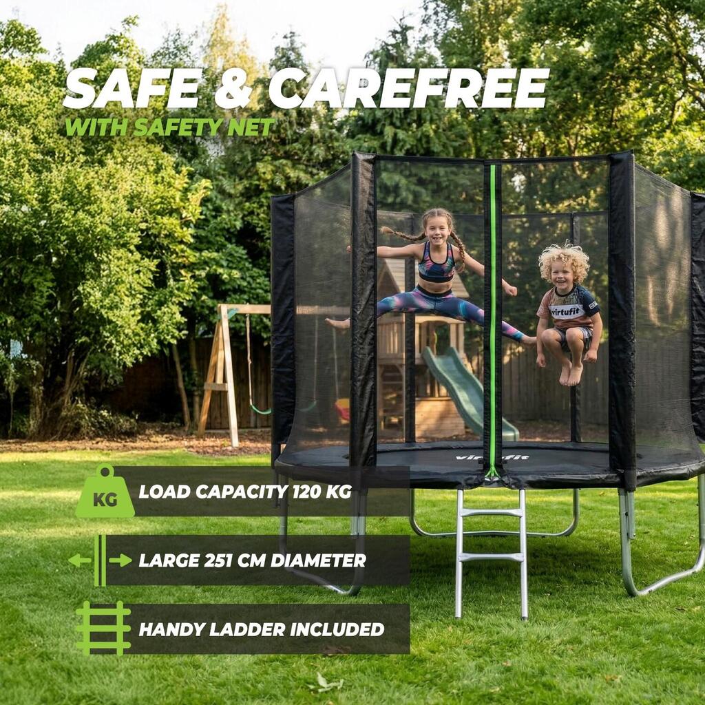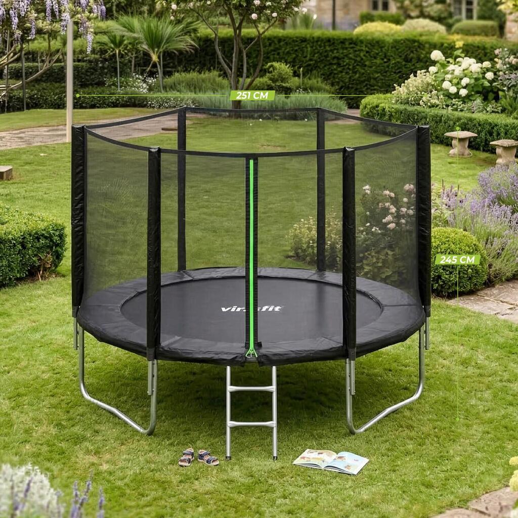 The VirtuFit Trampoline with Safety Net ensures jumping fun for young and old. This trampoline is suitable for outdoor use and thanks to the sturdy safety net it is virtually impossible to fall off.
