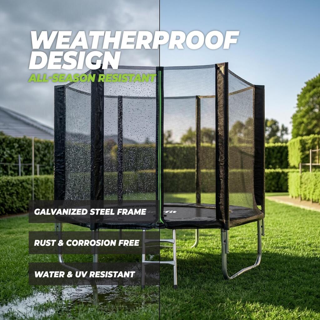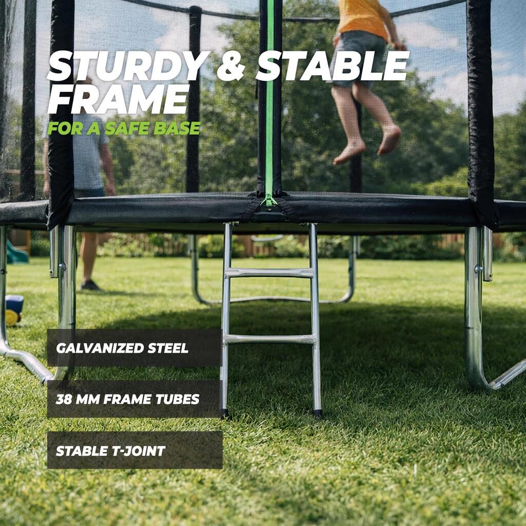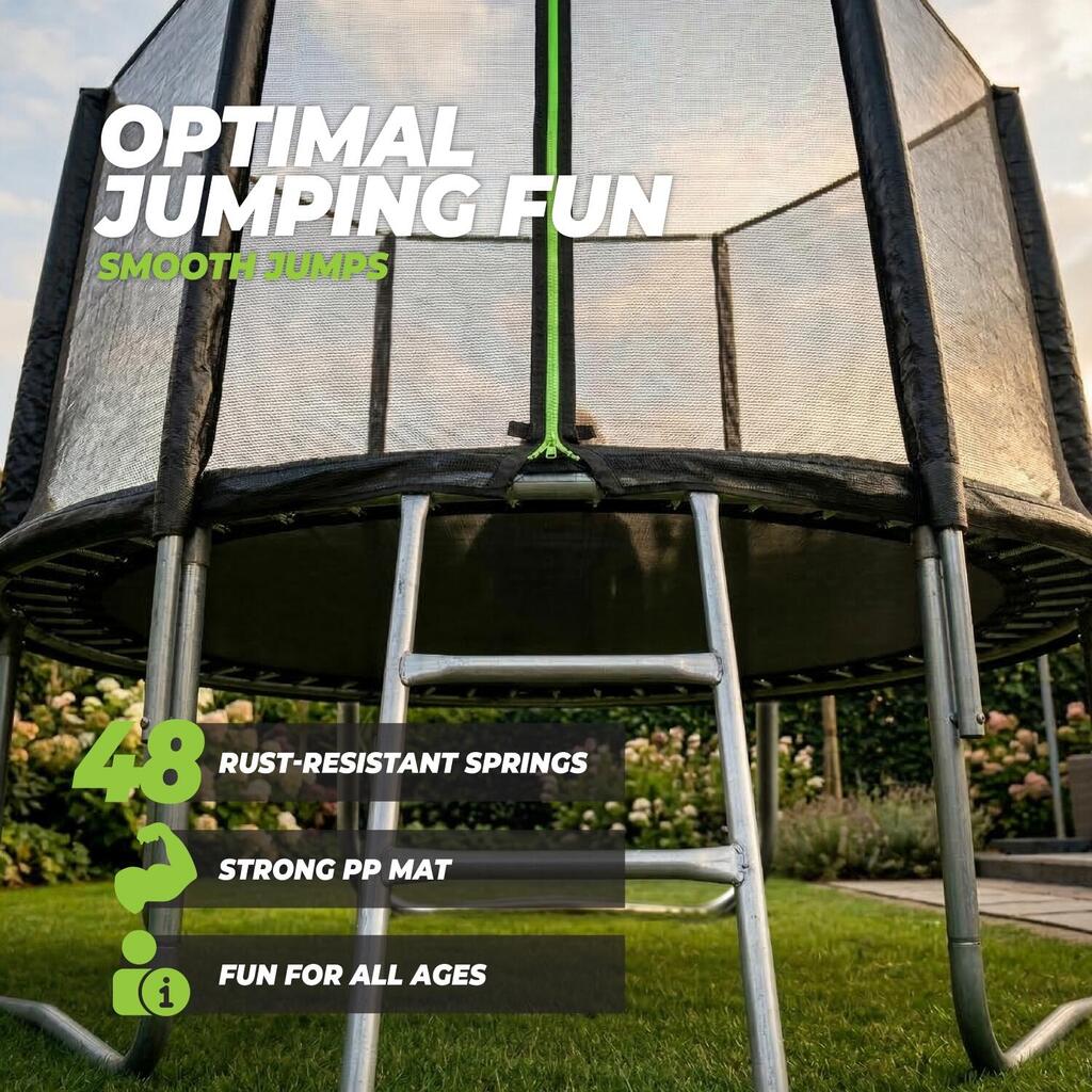 The VirtuFit Trampoline with Safety Net ensures jumping fun for young and old. This trampoline is suitable for outdoor use and thanks to the sturdy safety net it is virtually impossible to fall off.