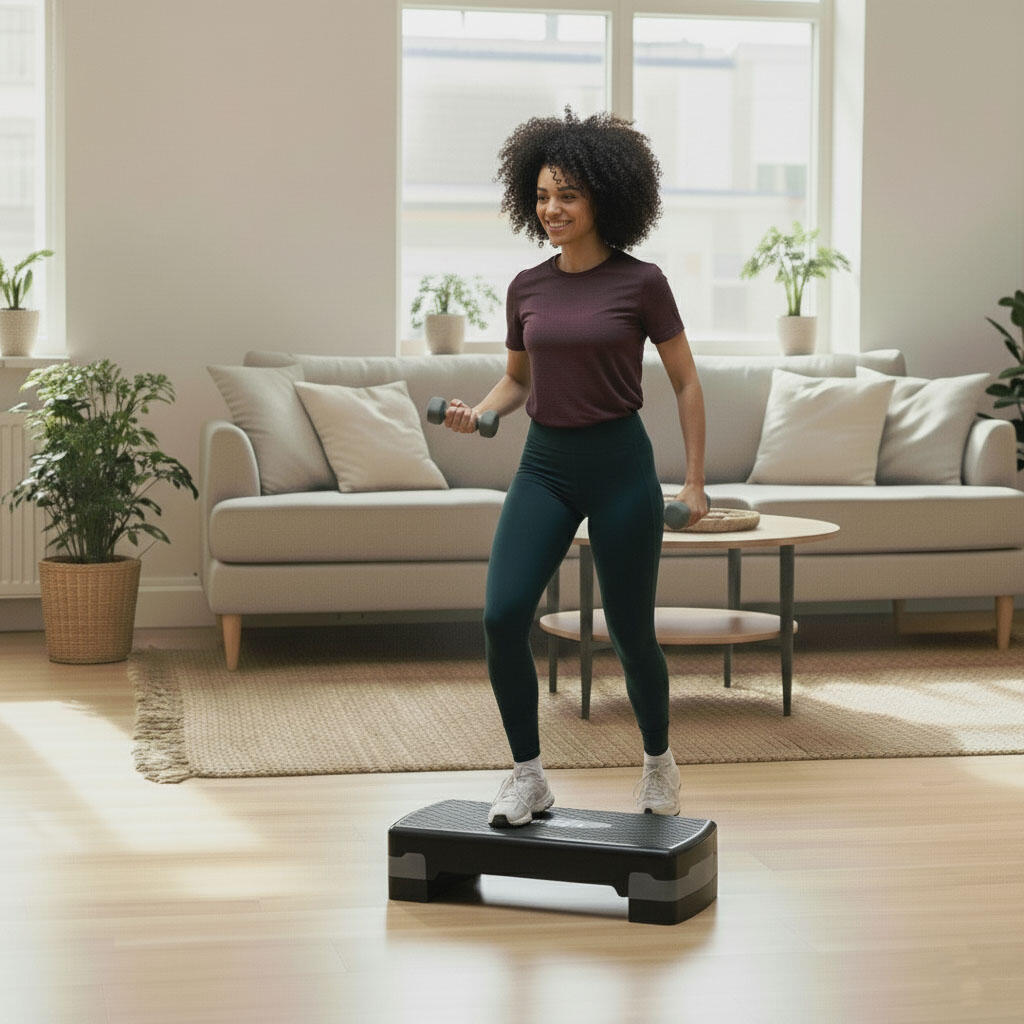 The spacious training surface of 68 x 28 cm increases your exercise options without fear of missteps. The wear-resistant anti-slip layer ensures that shifting or slipping is virtually impossible. The sturdy material allows a maximum load capacity of 150 kg. This makes this step highly suitable for home use.