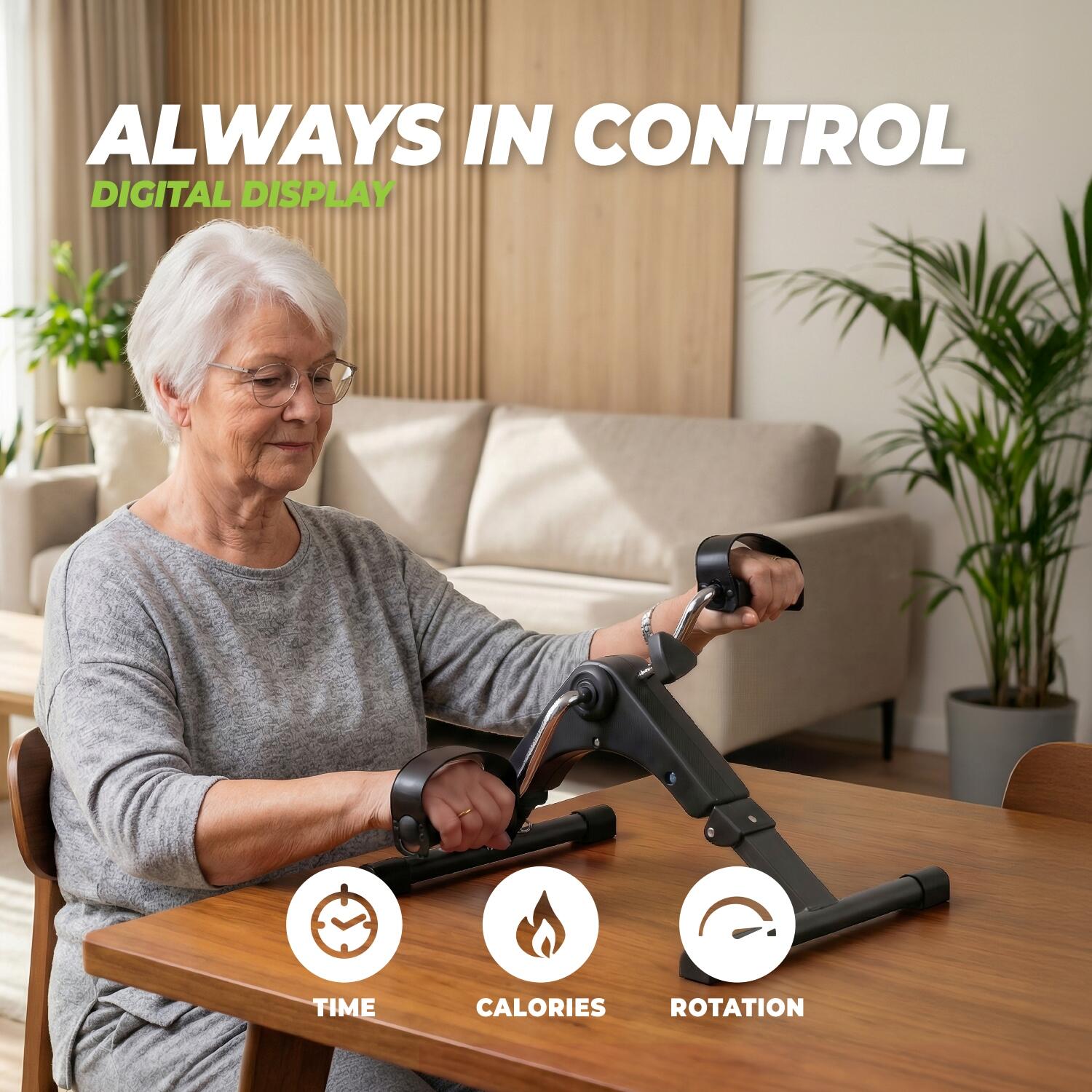 • With the VirtuFit MB200, you easily add extra moments of movement to your day without having to make space for a large device. You quickly place it by your chair or under your desk and choose a light, adjustable resistance suitable for gentle movement and gradual buildup. Finished? Then fold the chair bike compactly and store it neatly.