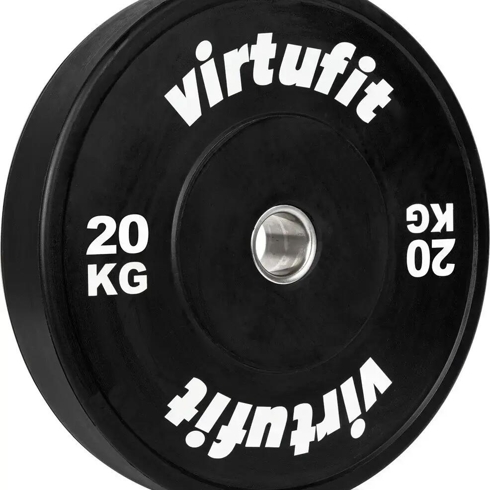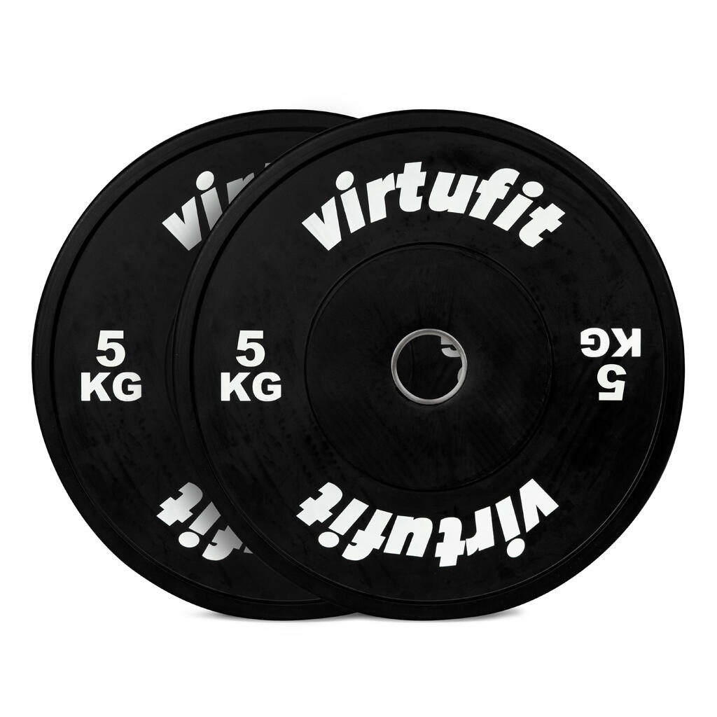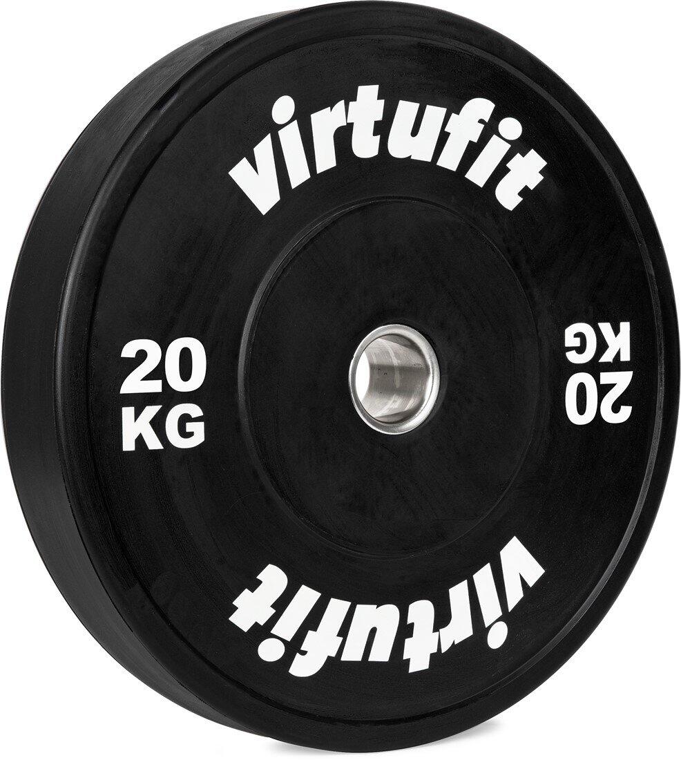 The Bumper Plates from VirtuFit are made from recycled SBR rubber and granulate, bonded with PUR and have a cast iron inner ring. Thanks to the sturdy rubber, the bumper plates last for years. All bumper plates have the same diameter, but differ in width depending on the weight.