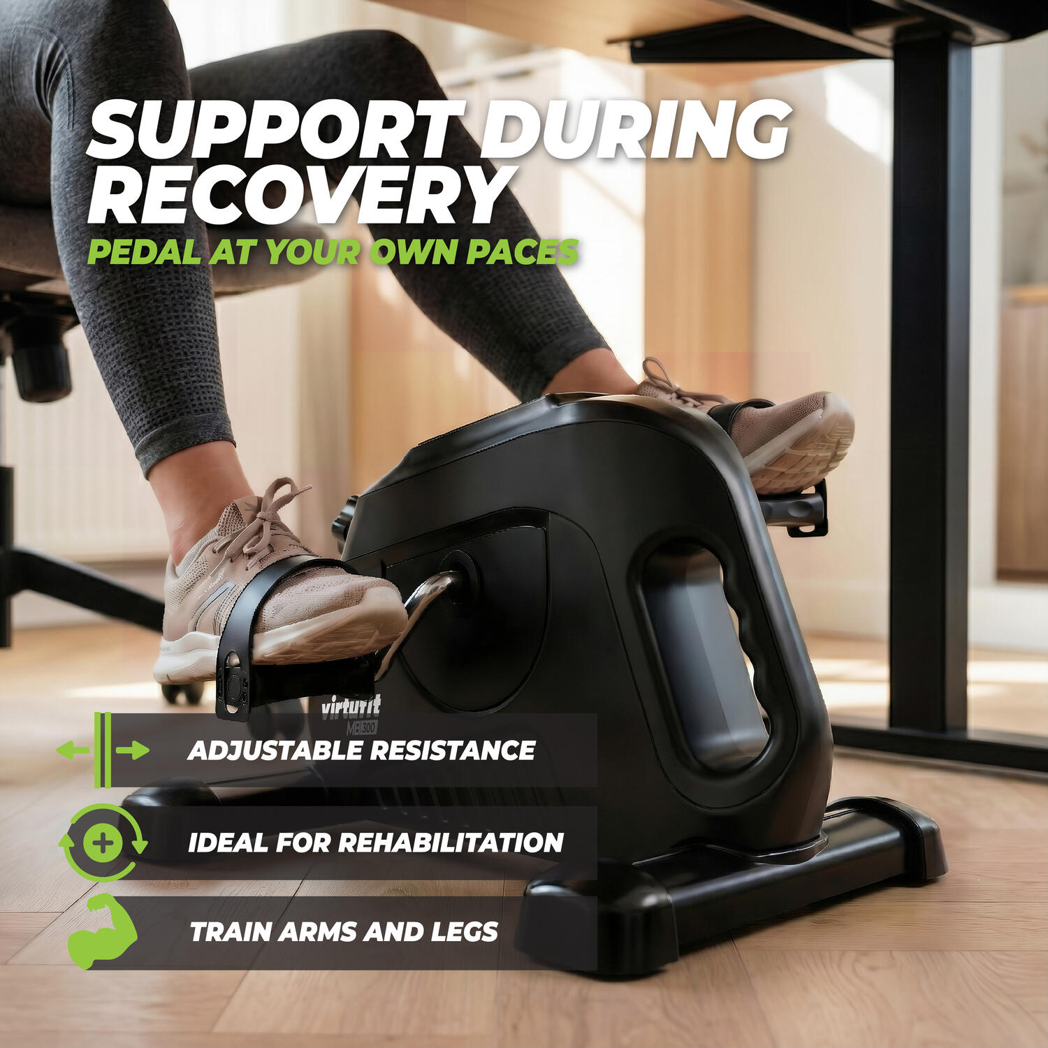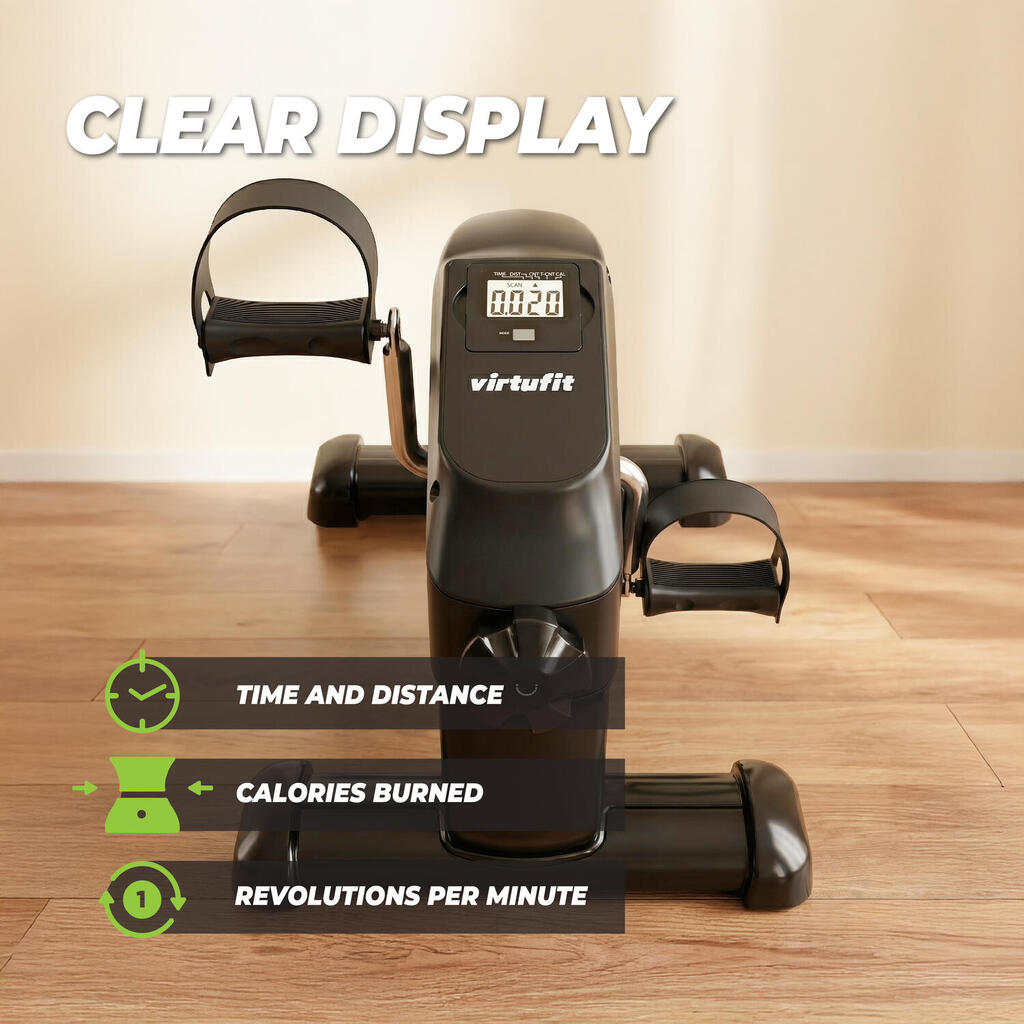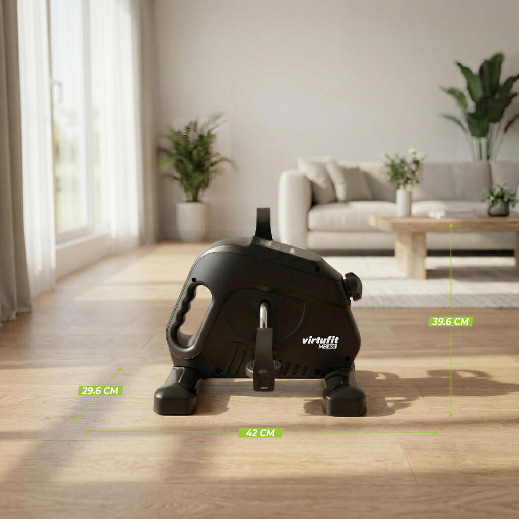 The VirtuFit V3 Recumbent Bike / Exercise Bike with Handle and Computer helps you comfortably train your arms and legs. This exercise bike features a dial to easily set the resistance level to your own preference. While using the trainer, you can track time, distance, rotations, rotations per minute, and calories burned on the display. You choose which of these statistics appear on the screen. There is also a scan function to automatically switch between the different data. The computer starts automatically and also turns off automatically after use.