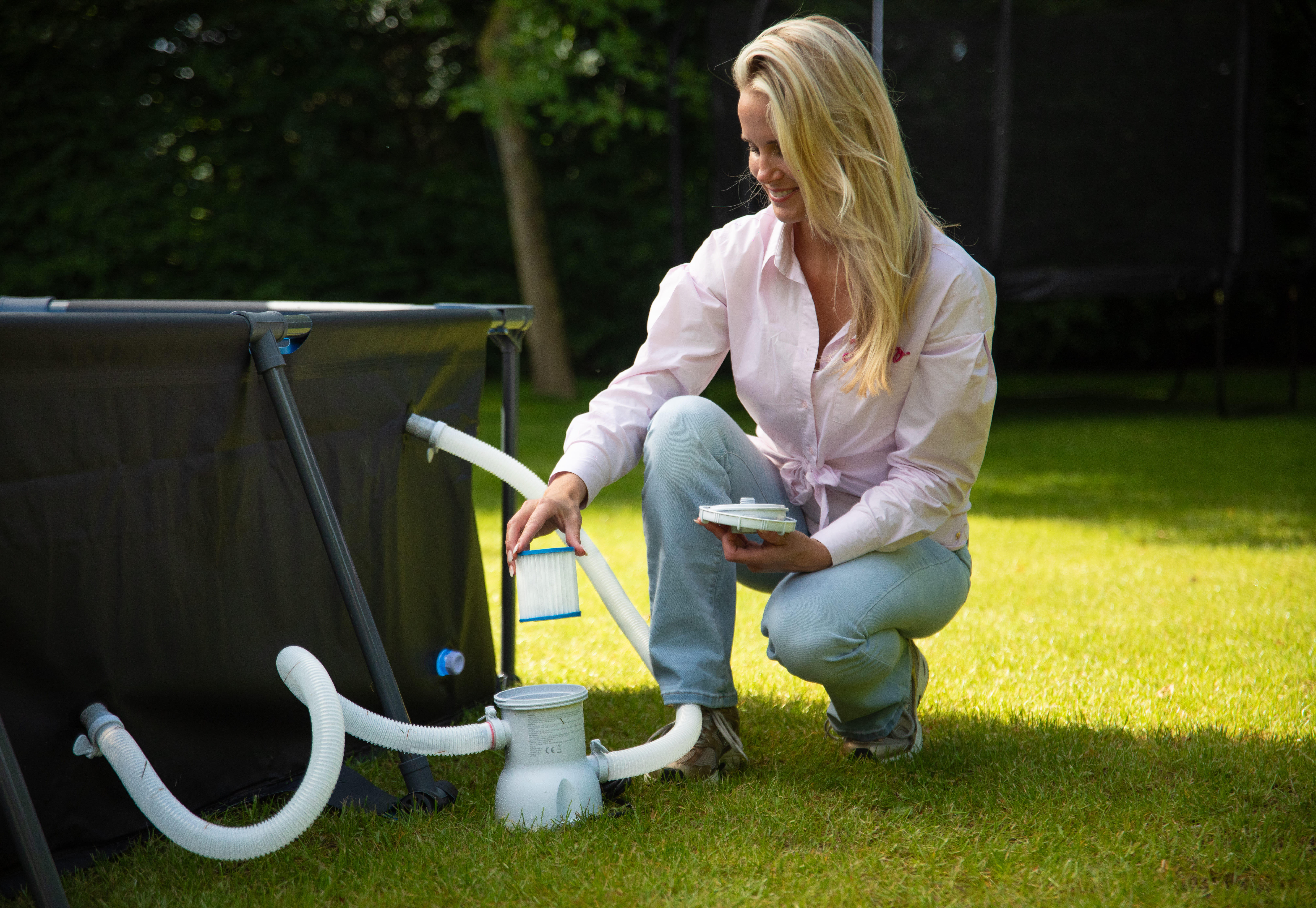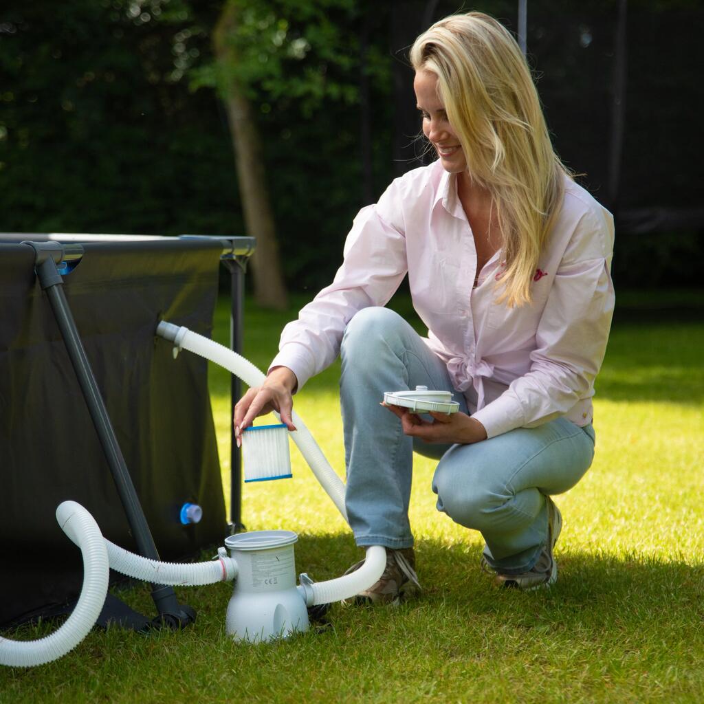 The VirtuFit Pool Cartridge Filter Pump is easy to install and ensures your pool water is always in top condition. The filter cartridge captures dirt and other impurities, allowing you to swim worry-free. Maintenance of the pump is simple; just replace the cartridge when needed to guarantee optimal performance. Separate cartridges are also available, so you always have a clean filter on hand. The connection of this filter pump is Ø32mm, making it universal and also usable for other pools.