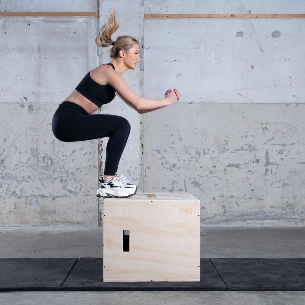 The VirtuFit Wooden Plyo Box 3-in-1 Small is specially designed for people who are smaller or unable to jump on a full-size wooden plyo box, such as seniors or juniors. A plyo box is one of the most used training tools for Functional training and is primarily used for Box Jumps. With this, you train your explosive strength and jumping power in the legs, which among other things allows you to run faster and jump higher. This form of training on a plyo box is called plyometric training. In addition to Box Jumps, you can also perform many other exercises on plyo boxes, including Lateral Step Overs, Elevated Push Ups, and Burpee Box jumps. This product originates from China.