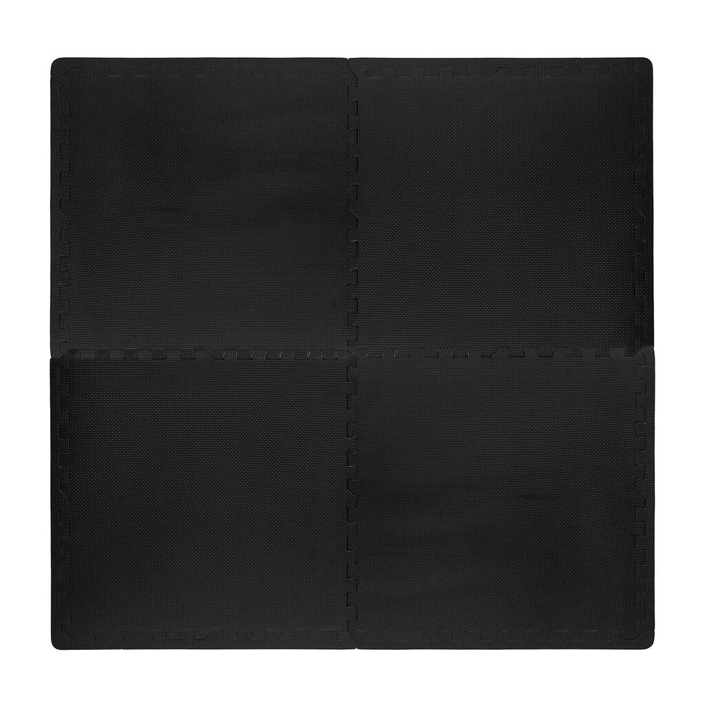 The VirtuFit Puzzle Mat **consists of 4 parts of 60 x 60 cm** that you can connect in different ways. You can expand the mat into a full sports floor by connecting multiple sets. The 4-piece set also fits with the 6-piece set. You can easily and quickly lay the mats on any flat surface. For intensive use, we recommend using a rubber floor or a judo mat.