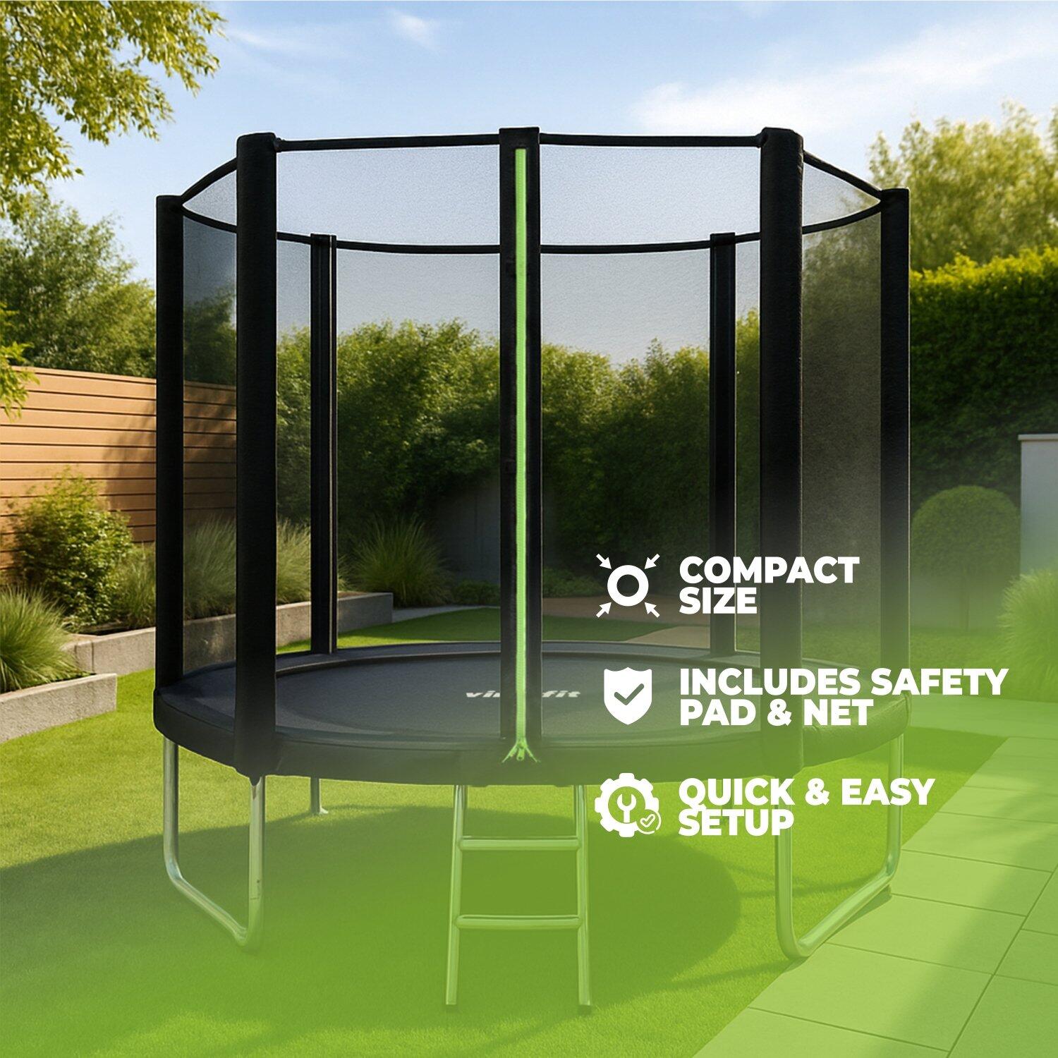 The VirtuFit Trampoline with Safety Net guarantees jumping fun for young and old. This trampoline is suitable for outdoor use and thanks to the sturdy safety net it is virtually impossible to fall off.