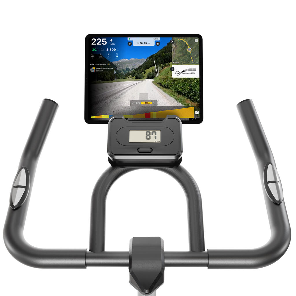 The VirtuFit RS100 Indoor Cycle is easy to connect with popular training applications such as Kinomap and Zwift. Note: When going up or down a hill in the app, the RS100’s resistance does not adjust. The correct version of iOS or Android is required for app use.