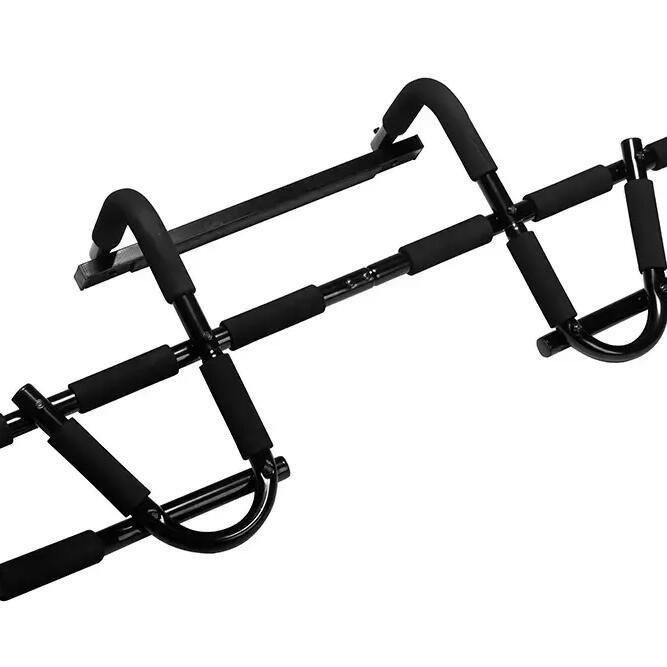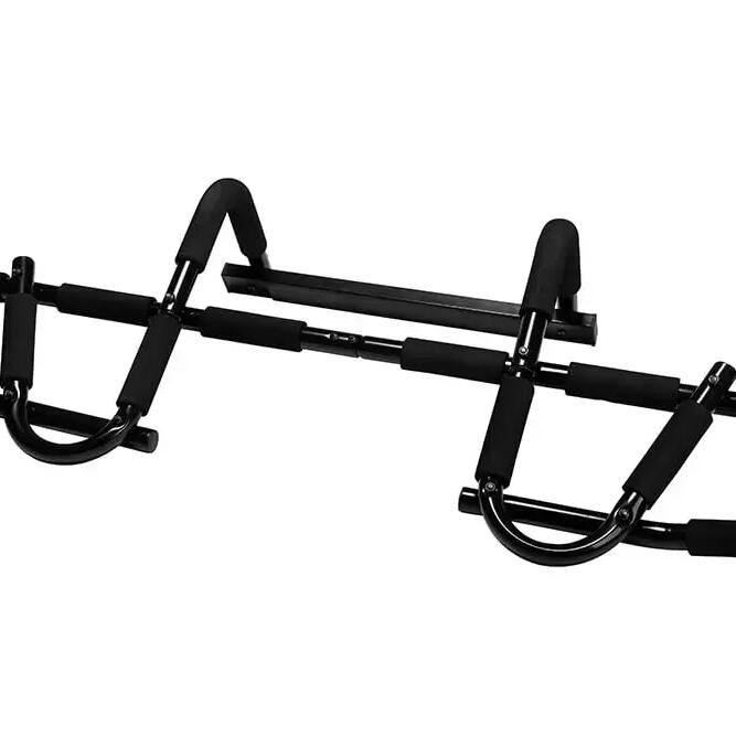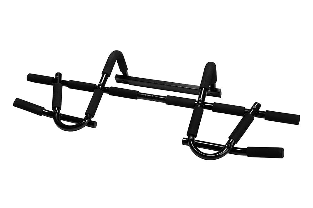 The VirtuFit Pull-Up Bar / Pull Up Bar Deluxe has multiple grip positions allowing you to train many different muscle groups. A pull-up with a wide grip is interesting if you want to train your shoulders. A pull-up with a narrow grip will target your biceps more. The chin-up, with a narrow underhand grip, is also a fantastic exercise for your biceps. Combine the different exercises to train your arms, chest, shoulders, back, and abdominal muscles.