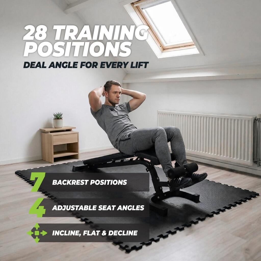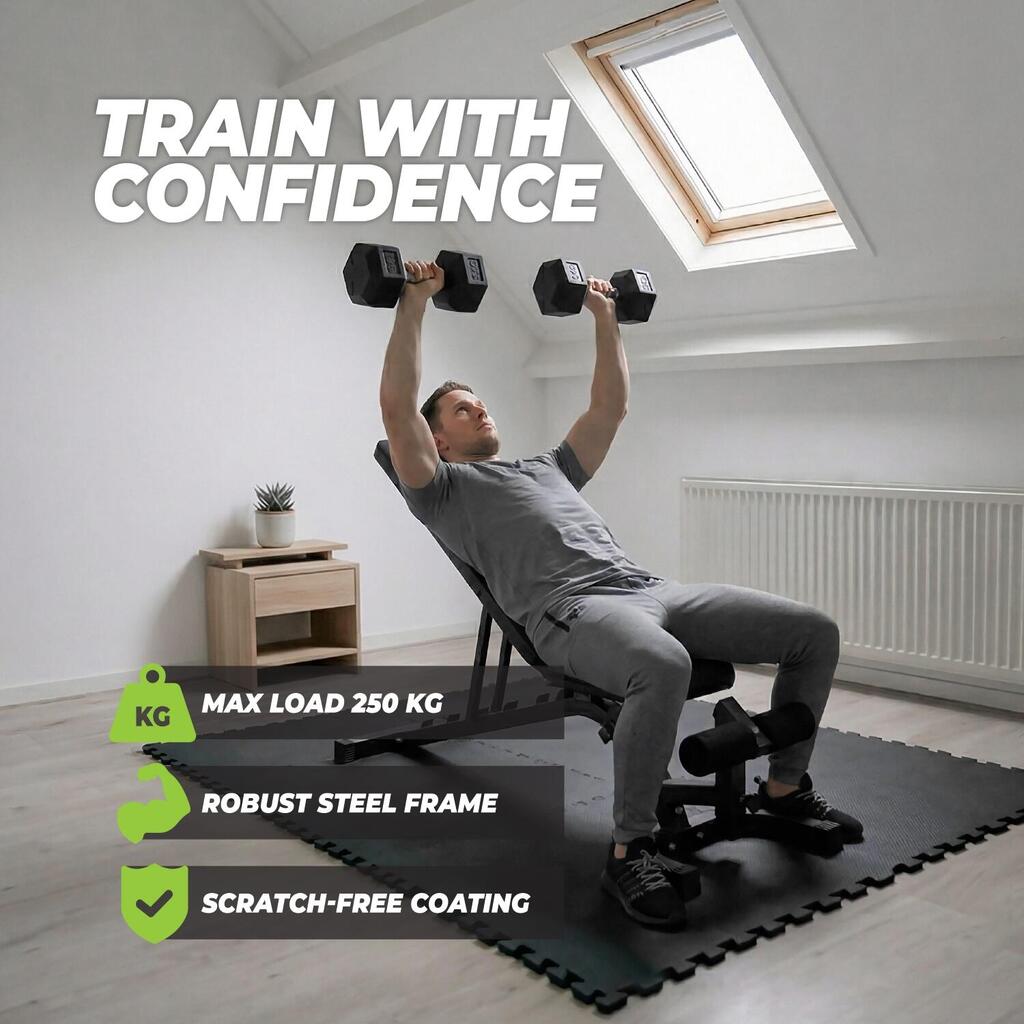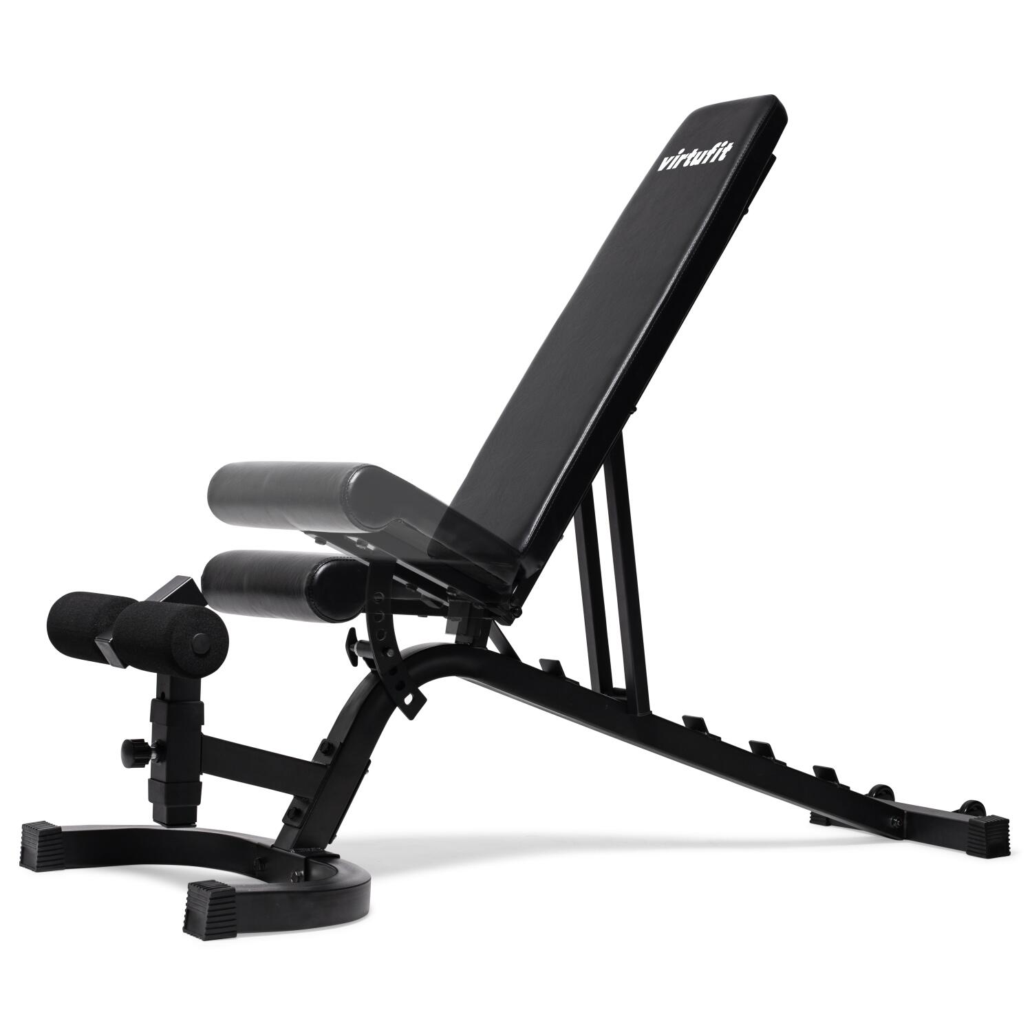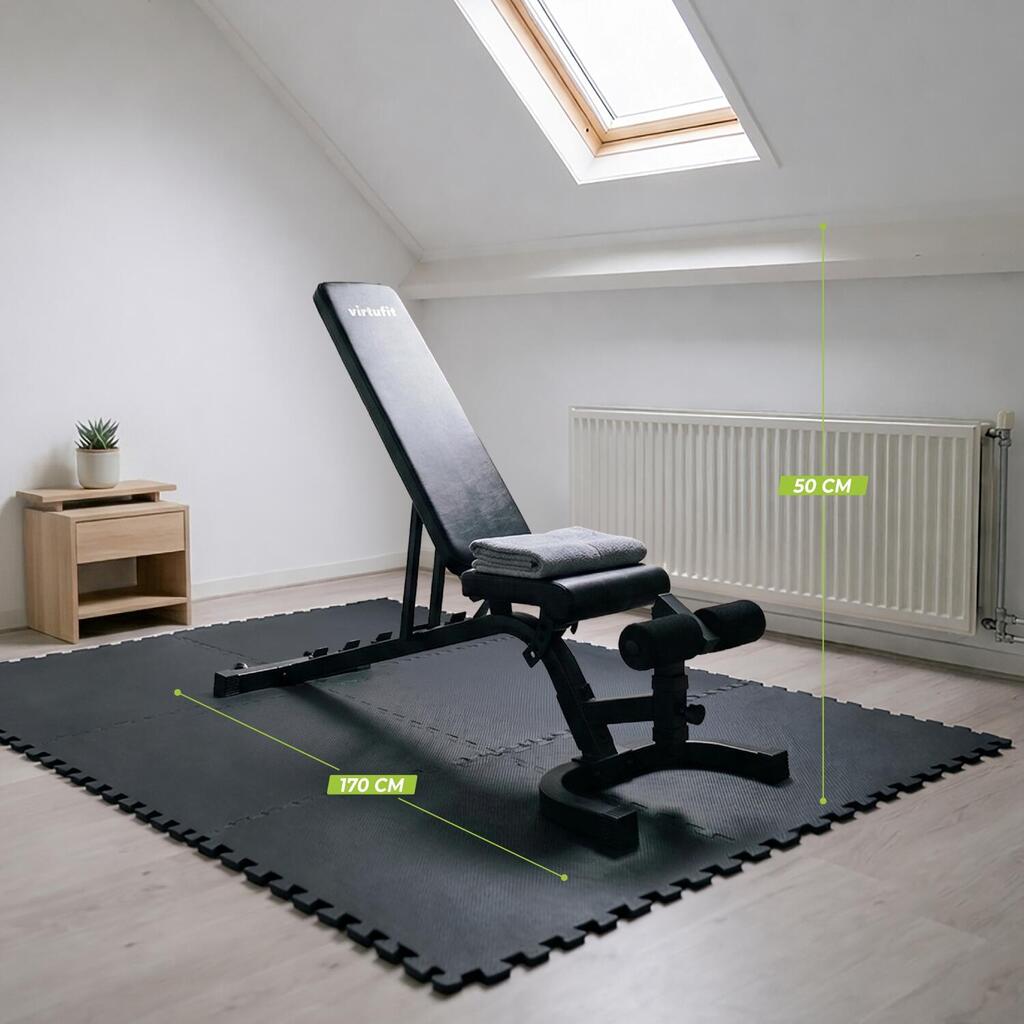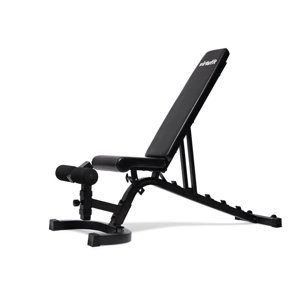The VirtuFit Adjustable Fitness Bench Pro is a training bench suitable for serious athletes. This sturdy training bench has a steel frame with a scratch-resistant coating and supports up to 250 kg. The seat and backrest are equipped with professional 5.5 cm thick padding to support heavy exercises. Furthermore, the seat is adjustable in 4 positions and the backrest in 7 positions.