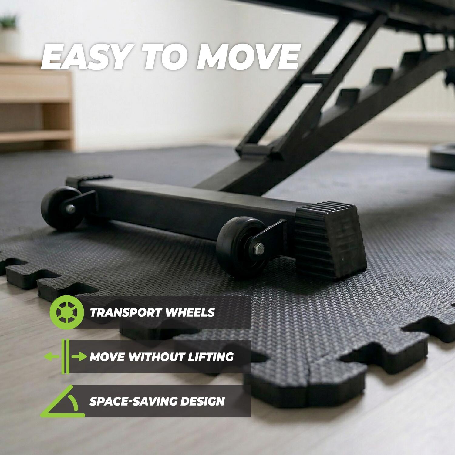 The sturdy rollers provide counterbalance during abdominal exercises and various exercises with, for example, a cable station.