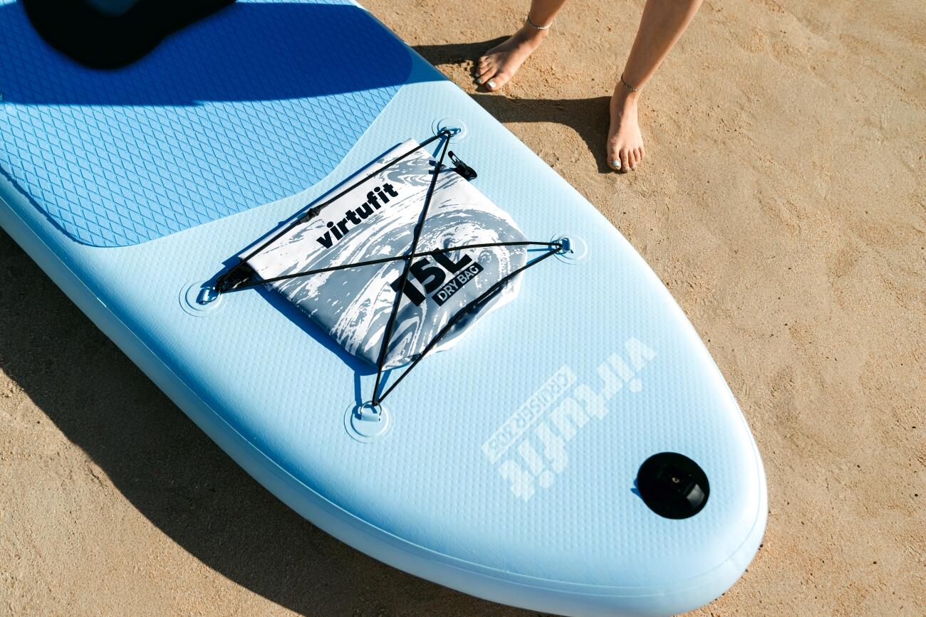 The VirtuFit Dry Bag is indispensable for SUP paddlers and watersports enthusiasts. This waterproof bag, available in sizes of 5, 10, 15, and 20 liters, is designed to keep your belongings safe and dry during all your water adventures.