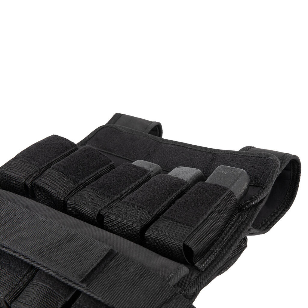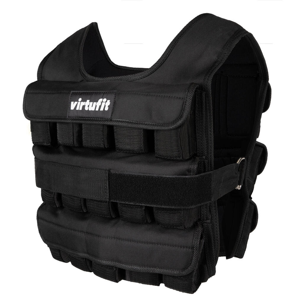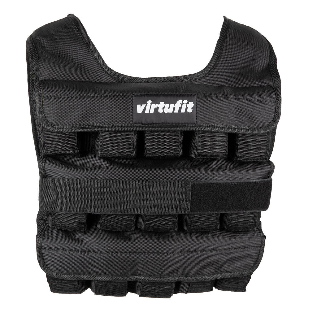 The VirtuFit Adjustable Weight Vest Pro is made from sturdy nylon, providing a comfortable fit. The compact design ensures you do not lose mobility, allowing you to train hard without restrictions. The VirtuFit weight vest is quick and easy to adjust. You can reduce the weight in no time by removing one or more cast iron weights from the compartments. The vest contains 30 x 1 kg weights. Make sure the weight distribution around your body remains even.