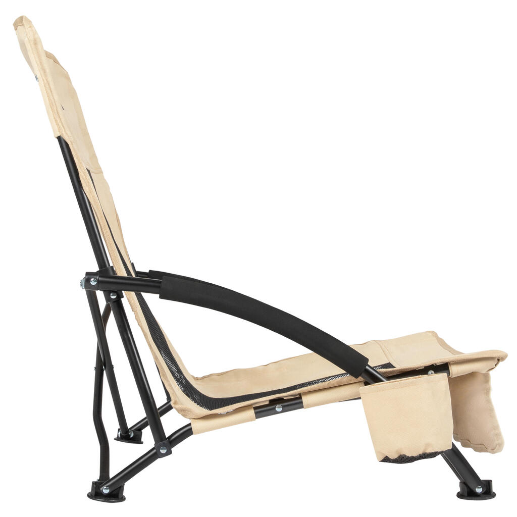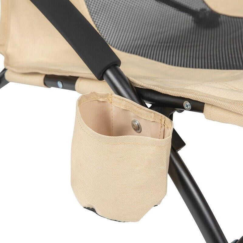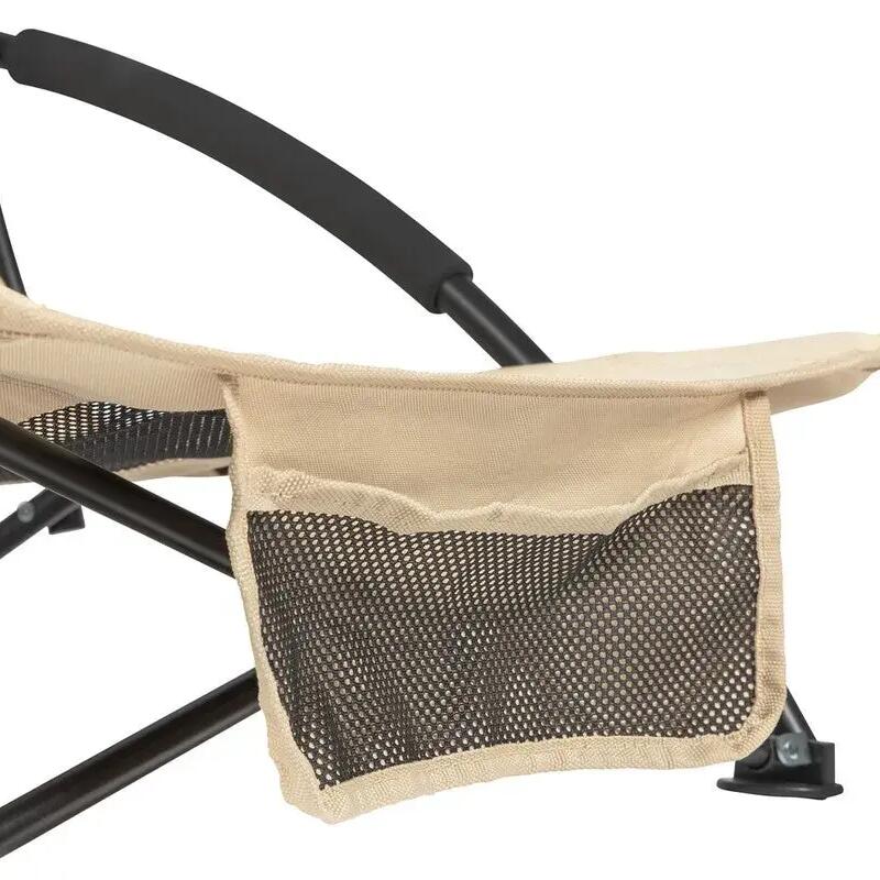 This beach chair features an ergonomic seat and a backrest that adapts to the contours of your body, while the breathable mesh fabric keeps you cool and comfortable, even on the hottest days. That is why the armrest is also equipped with a layer of soft and cooling foam. All essentials are within reach; your drink fits in the integrated cup holder and other essentials can be stored in the storage pocket at the front. So you can relax for a long time!