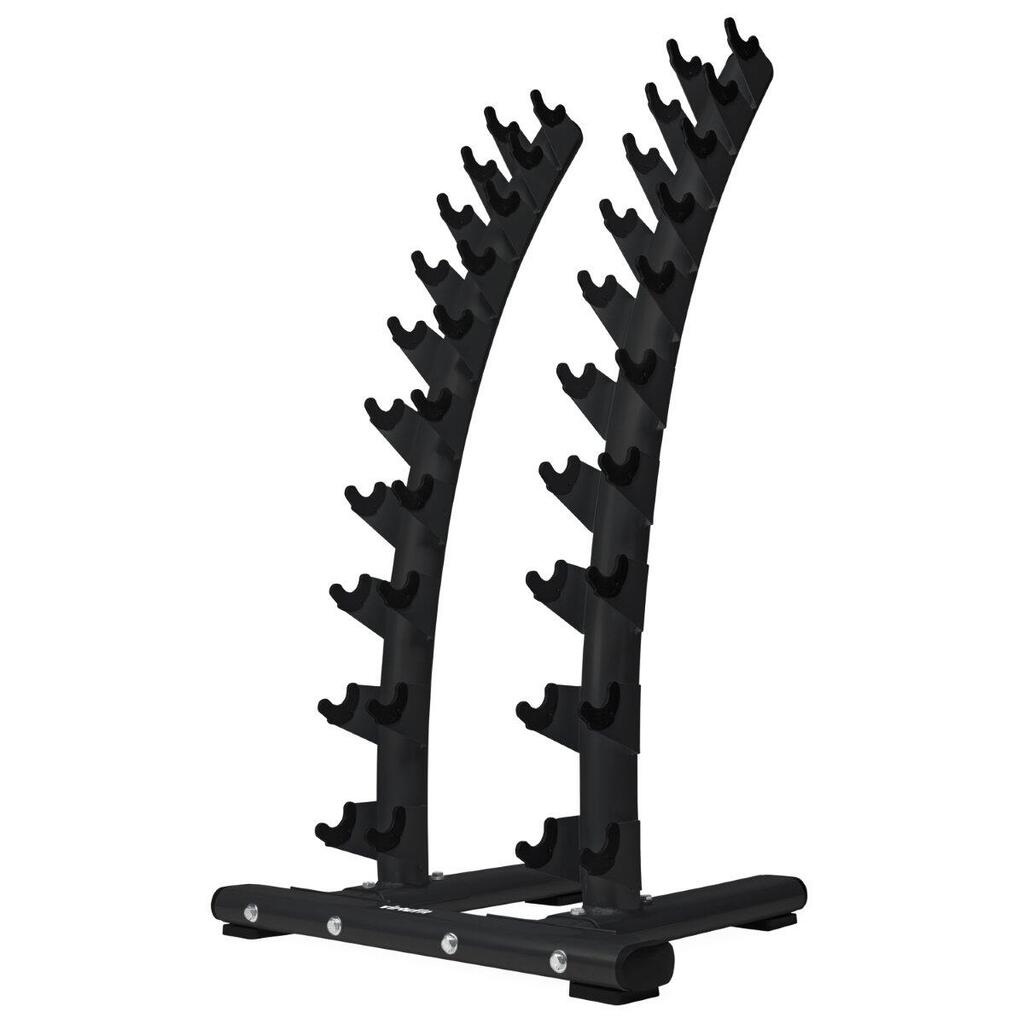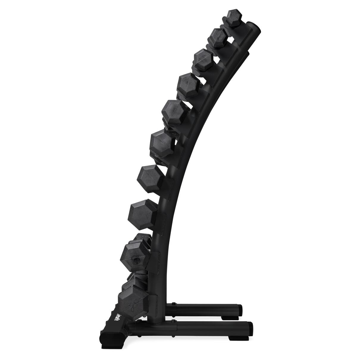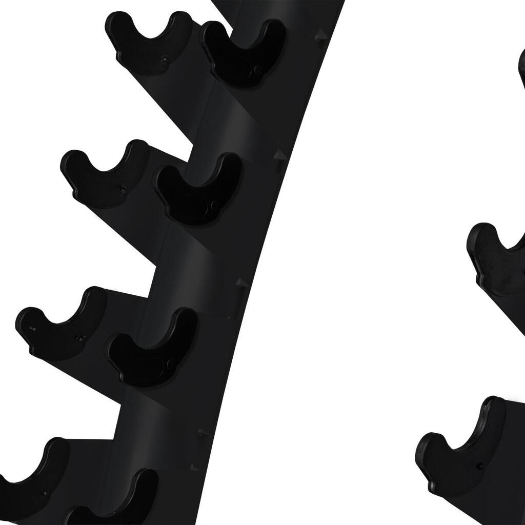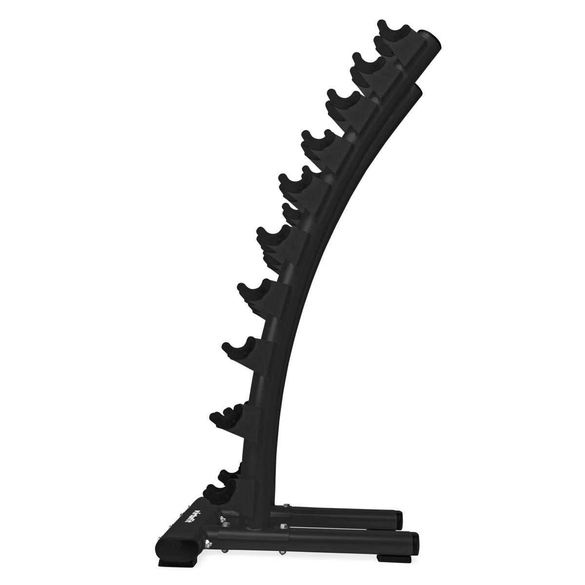 The curved design looks unique and ensures that the dumbbells can be stored in an organized manner. Due to its sturdy steel construction, the dumbbell rack can bear up to 300 kg, enough to hold all your dumbbells! The rack is sturdy and stable thanks to its heavy weight of 26 kg, making it also suitable for professional use. The rubber non-slip feet ensure that the rack does not easily shift and thus stays neatly in one place, also protecting the floor.