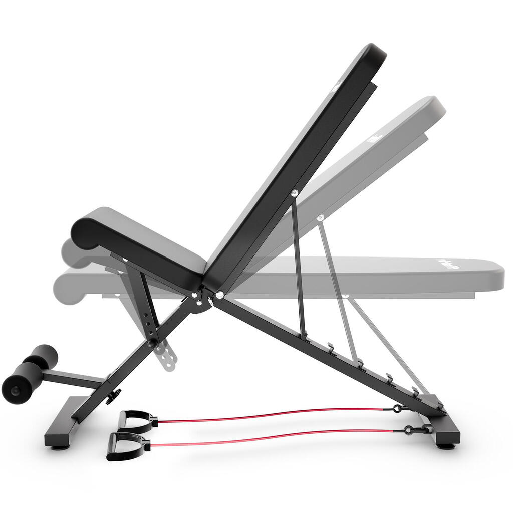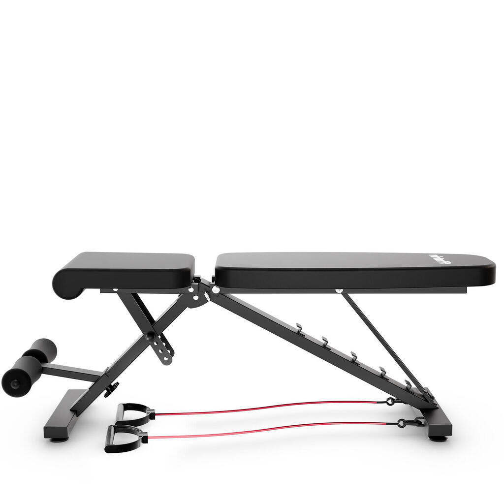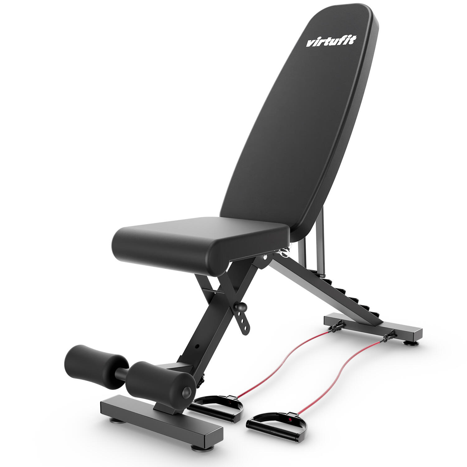 Extensive training possibilities with included resistance cables Easy to attach to the fitness bench, the resistance cables allow you to load your muscles in a versatile way, suitable for both beginners and advanced athletes. Add these cables to your workouts and discover a complete and effective training experience with the VirtuFit FB100 Fitness Bench.