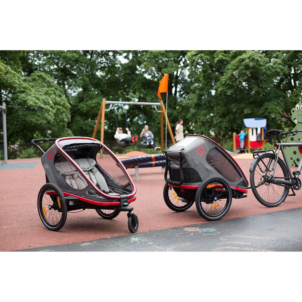 Discover the baby bike trailer Hamax Outback One, for safe and comfortable family adventures.
