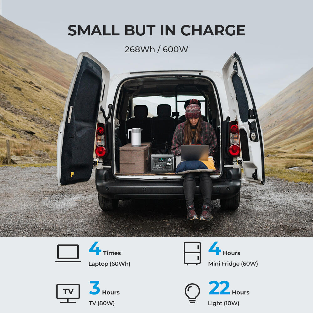 The EB3A is quite compact, but you can count on it for bigger jobs. Whether it's a small blender, a mini cooker, a rice cooker, or a small refrigerator, the EB3A has it all with a built-in refrigerator. Its 600W pure sine wave inverter (1200W in case of overvoltage) and its impressive 268Wh capacity.