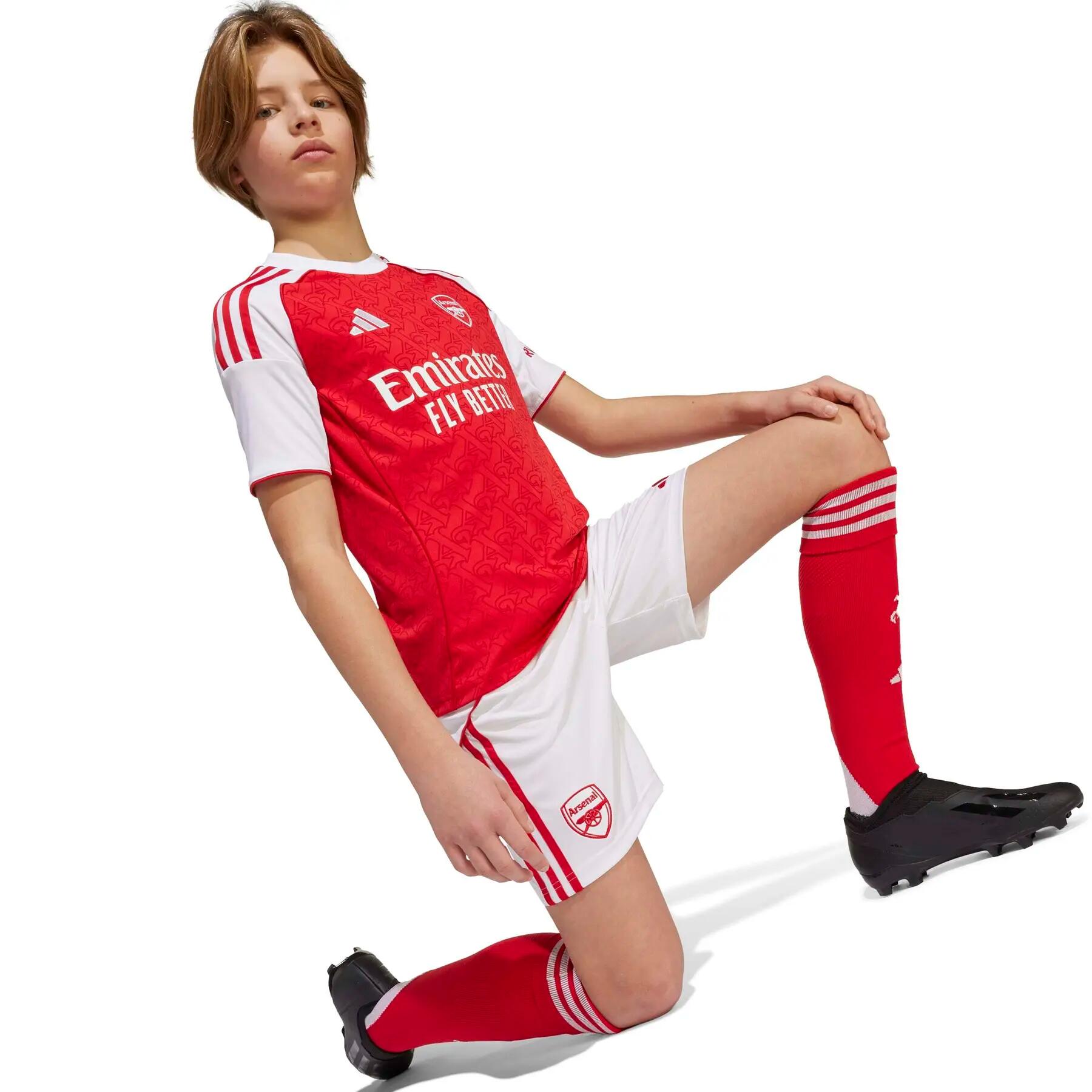 Discover the Arsenal Third Shorts for kids 2025/26, combining comfort and style for young football enthusiasts with adidas.