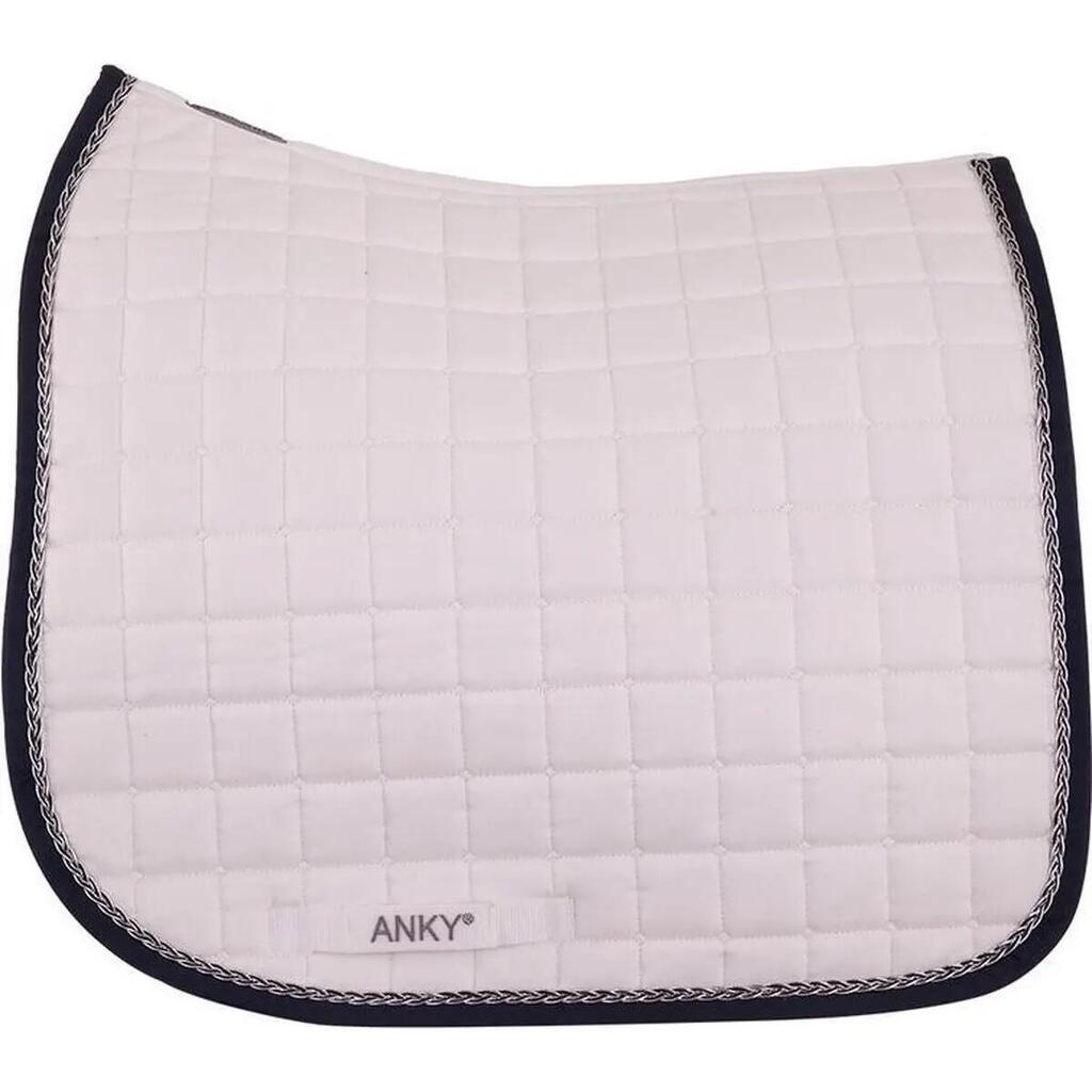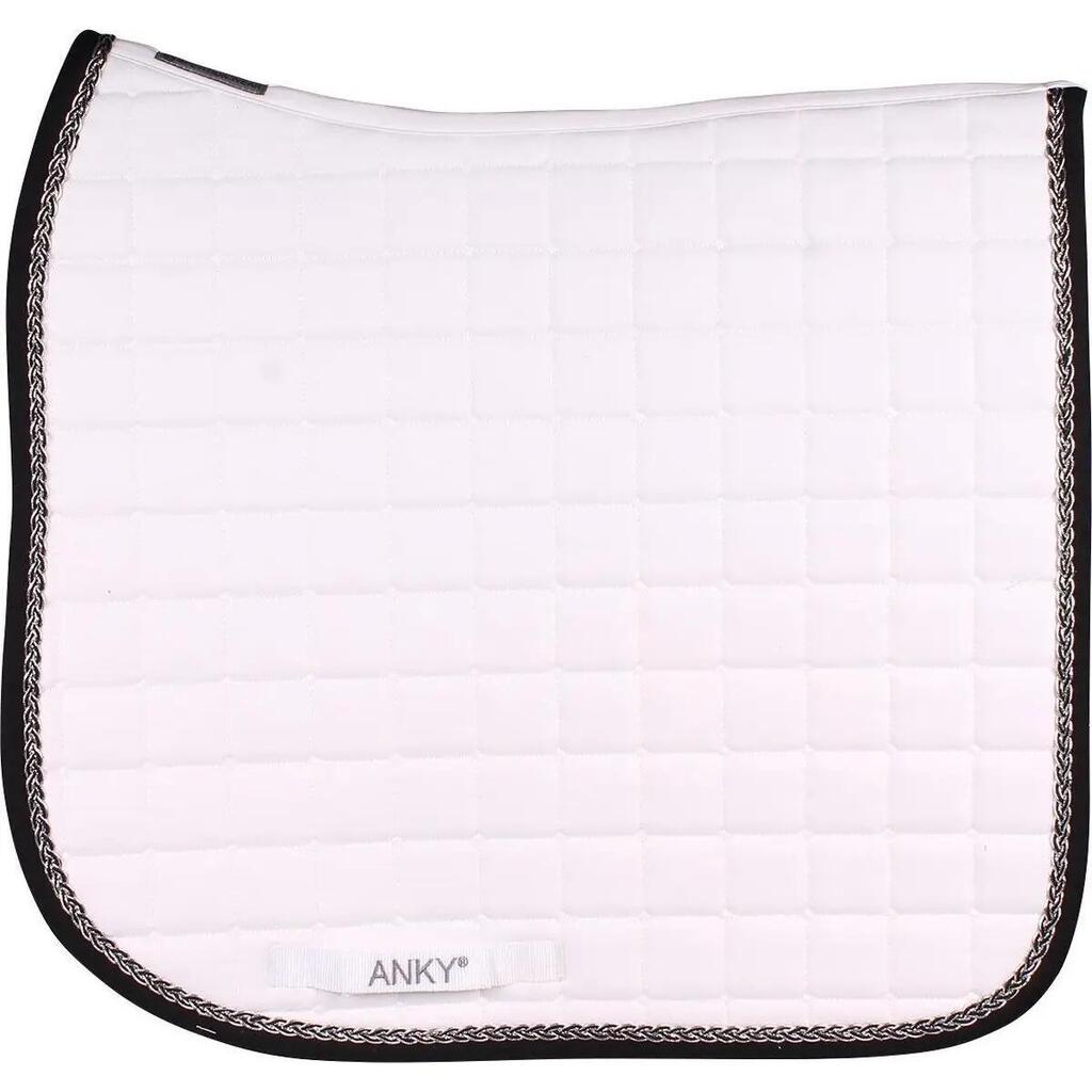 ANKY® C-Wear saddle pad: comfort and elegance for competitions, with silver braided cord and integrated sponsor logos. Give your horse the best.